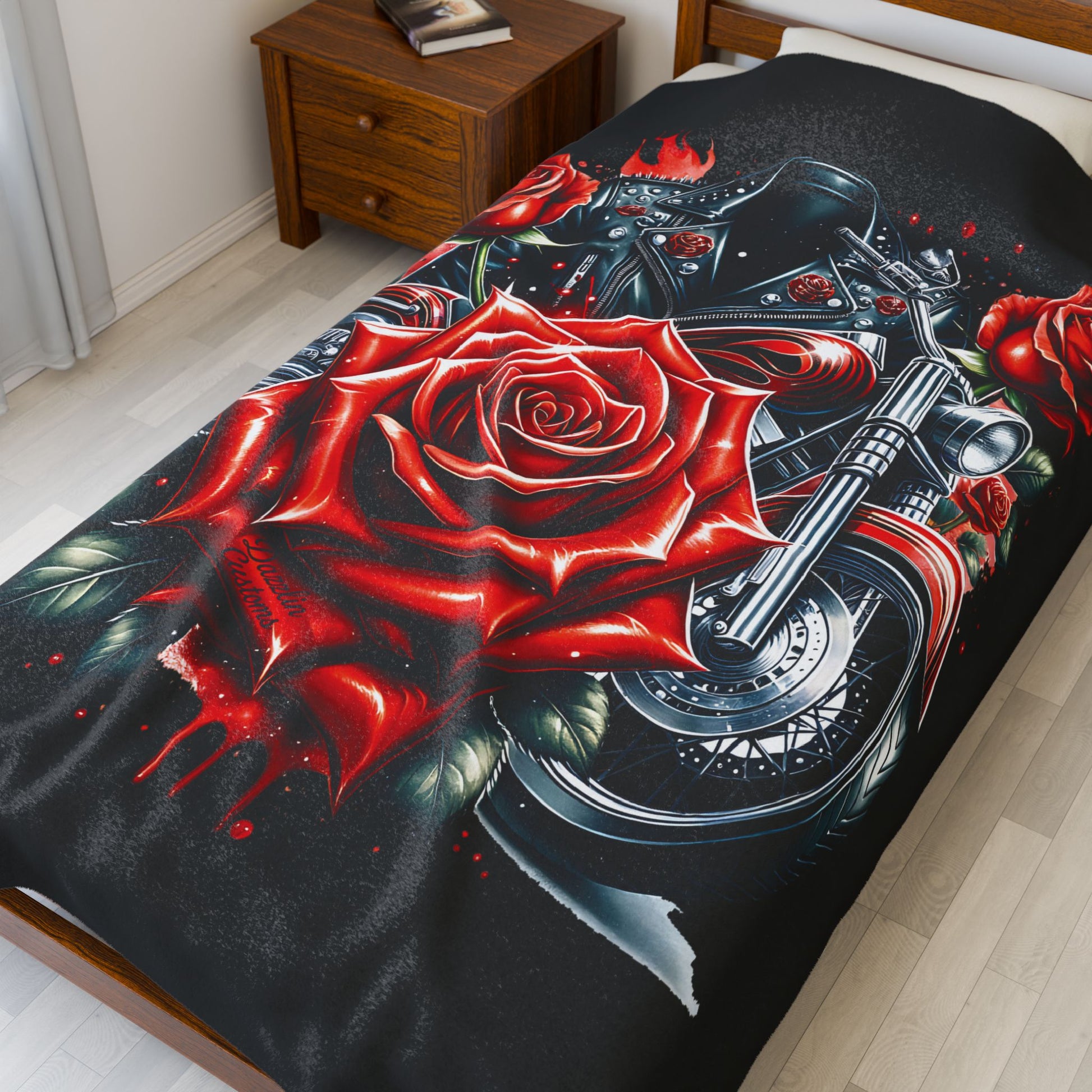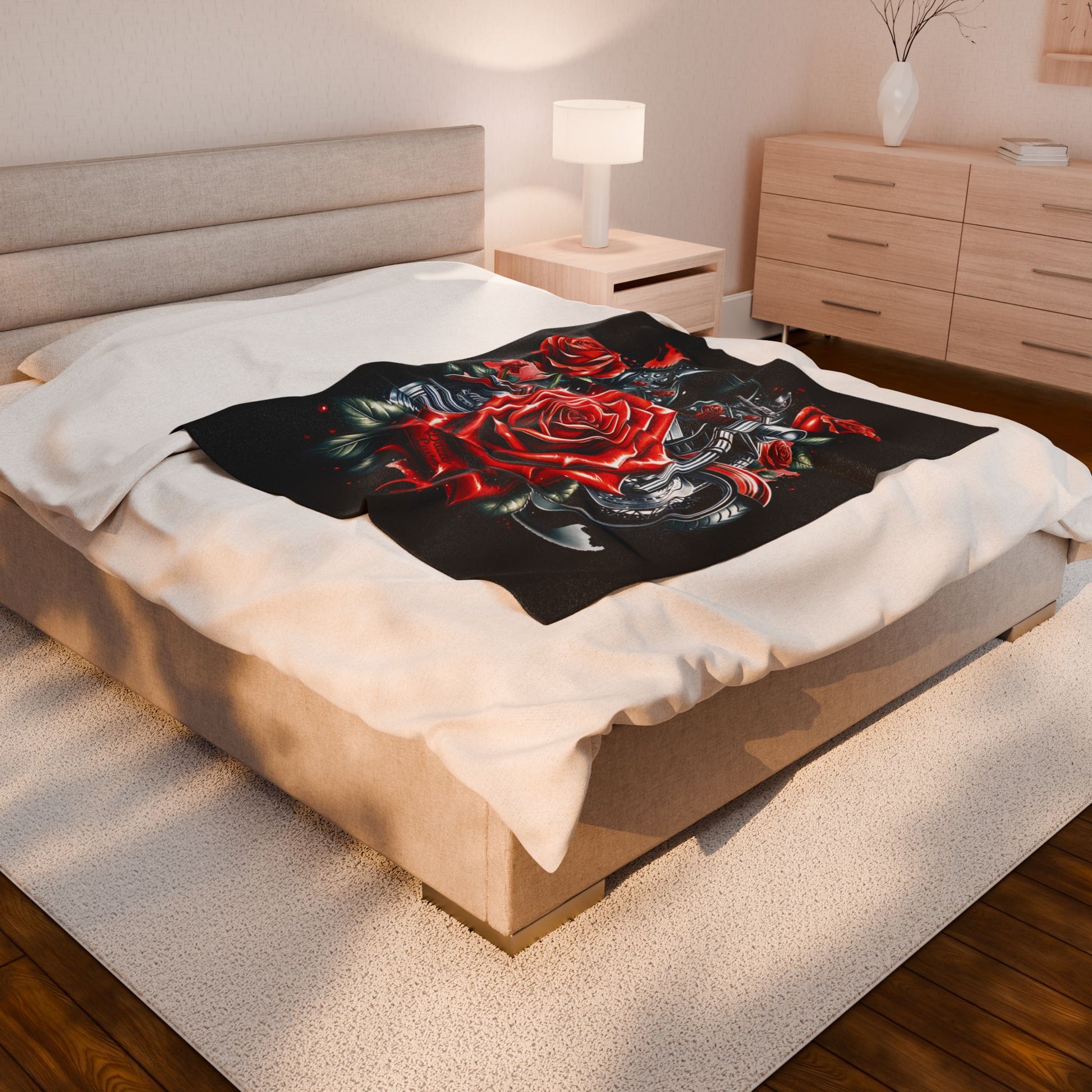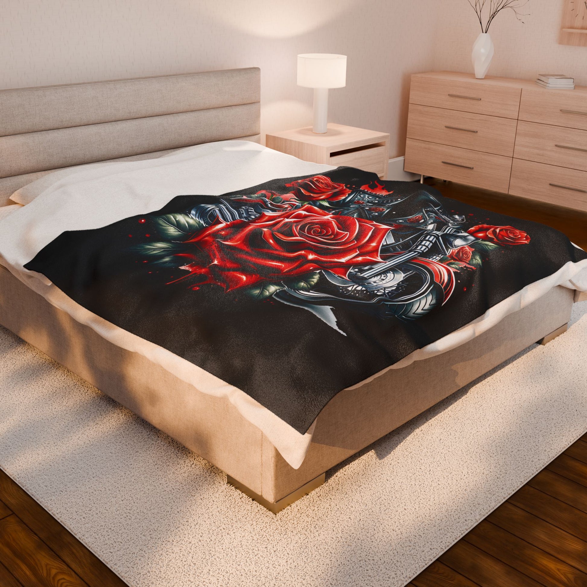 Gothic Rose Velvet Blanket | Cozy Throw, Home Decor, Gift for Bikers, Cool Stylish Blanket, Harley Inspired