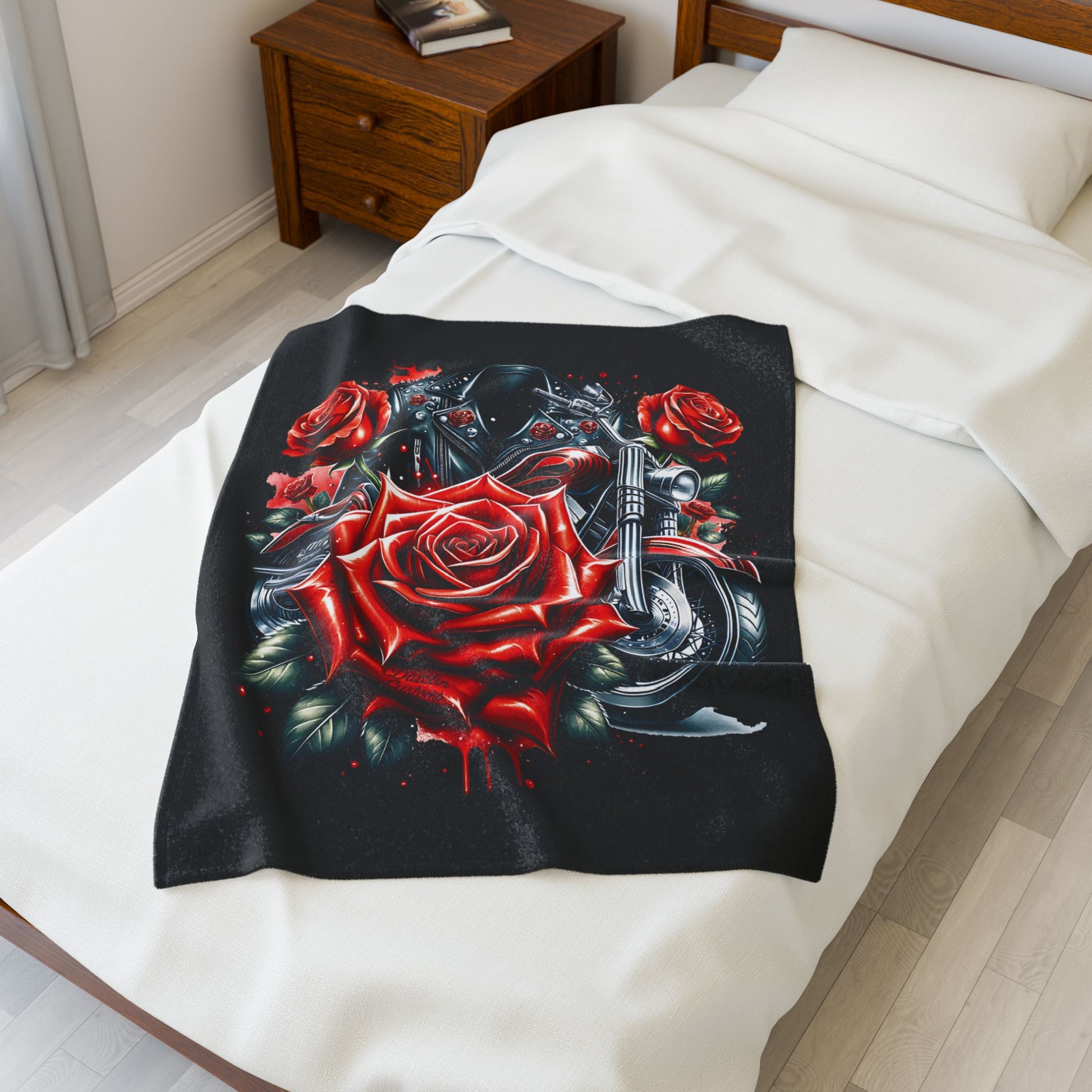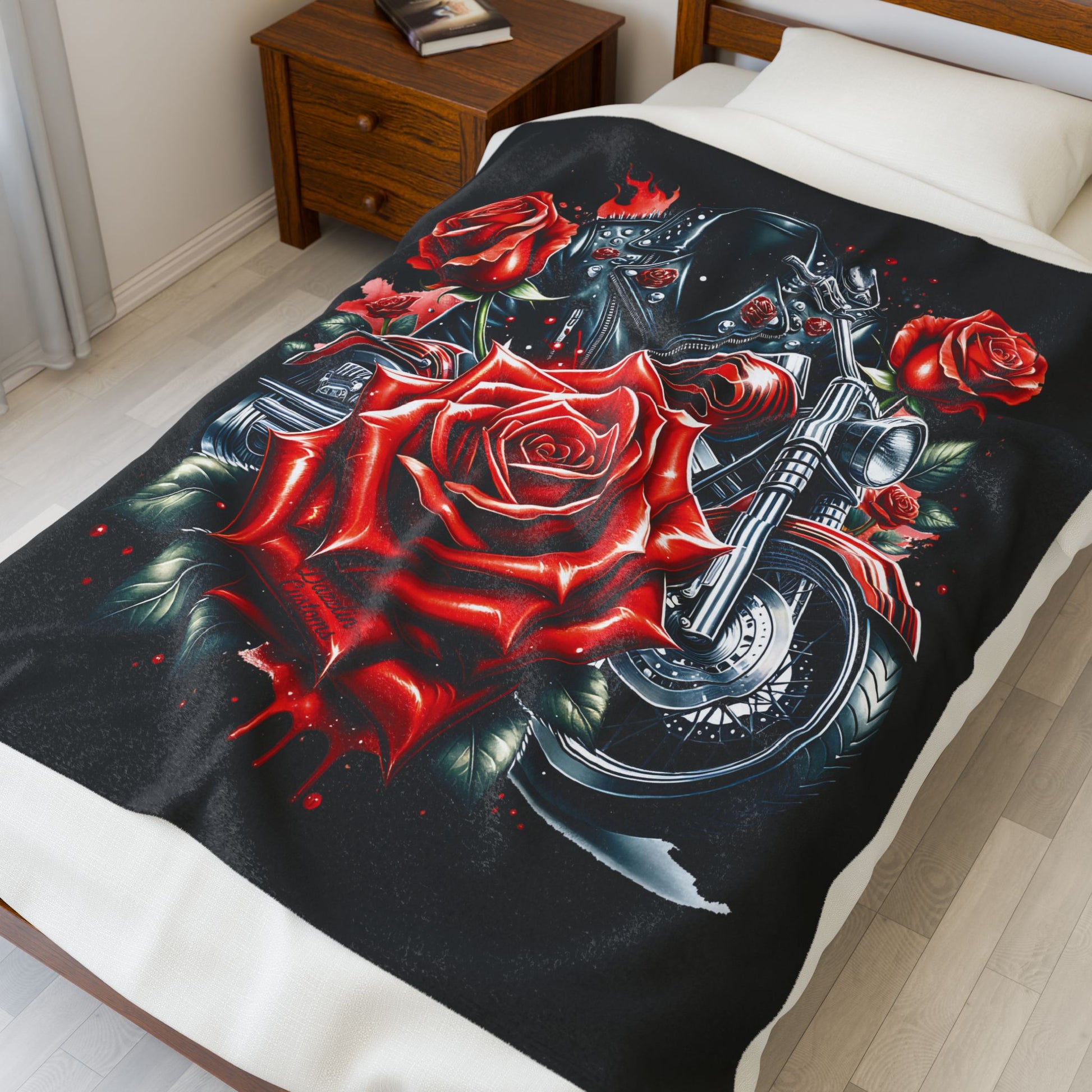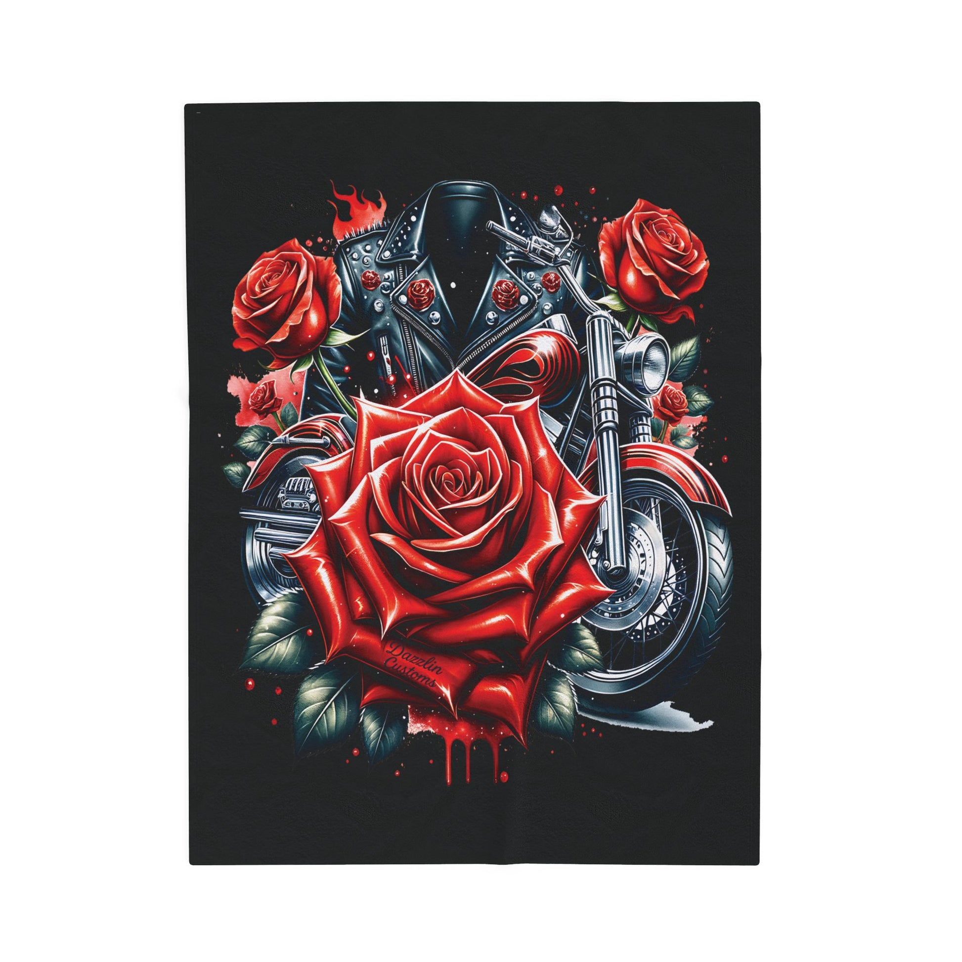 Gothic Rose Velvet Blanket | Cozy Throw, Home Decor, Gift for Bikers, Cool Stylish Blanket, Harley Inspired
