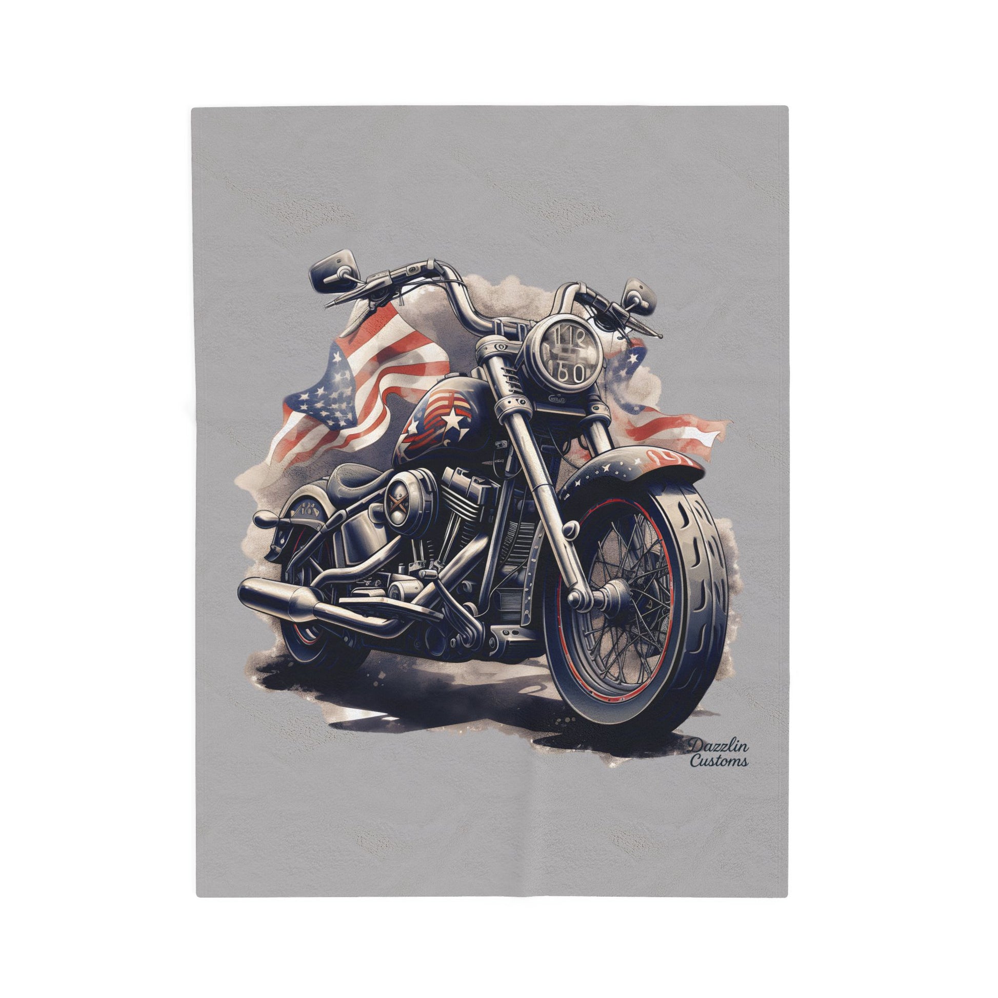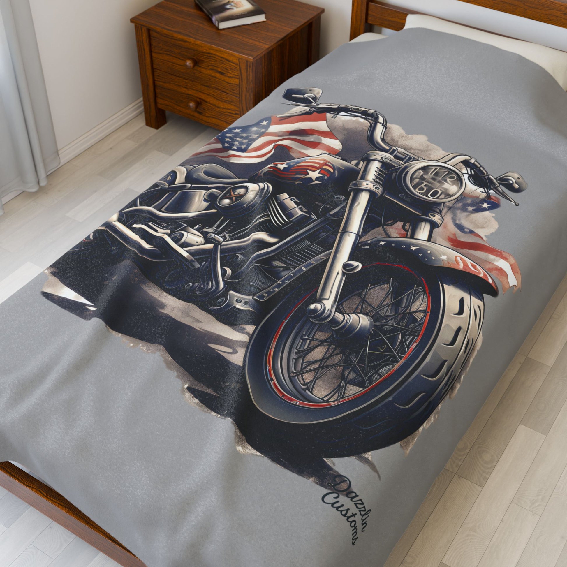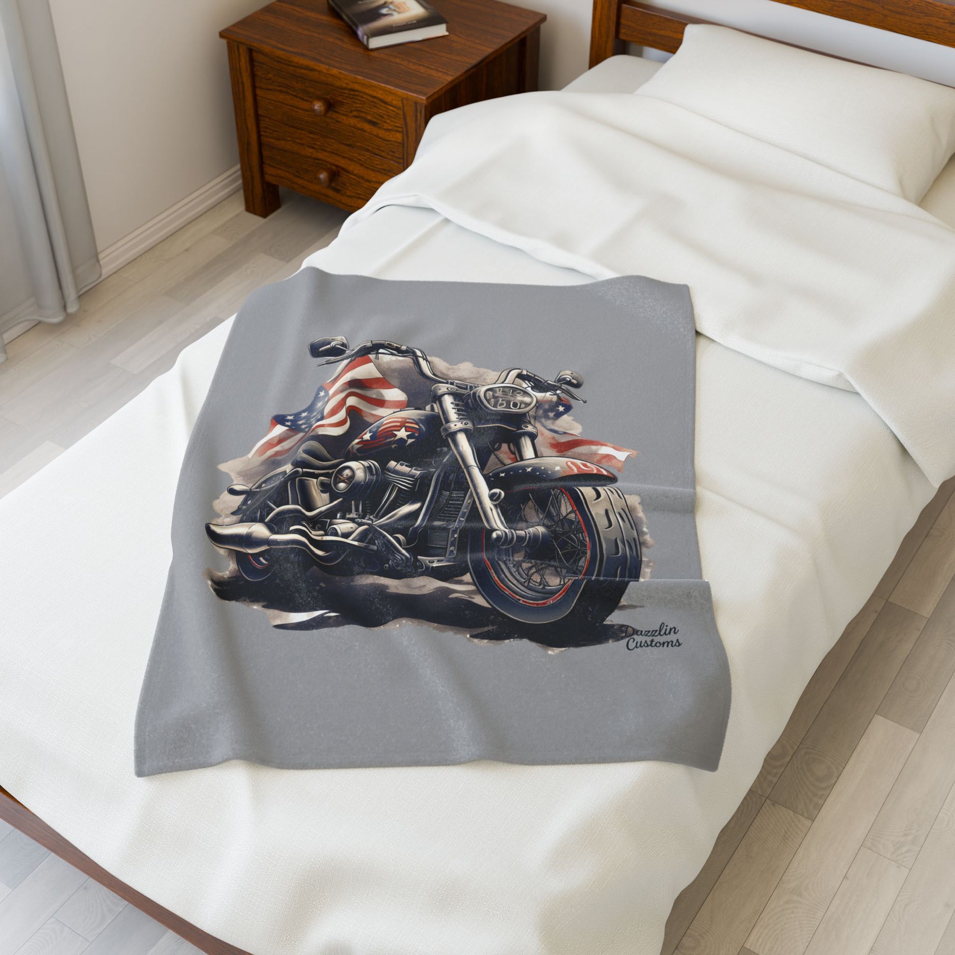 Patriotic Motorcycle Velveteen Plush Blanket | Cozy Gifts for Bikers, Camping, Home Decor, Americana