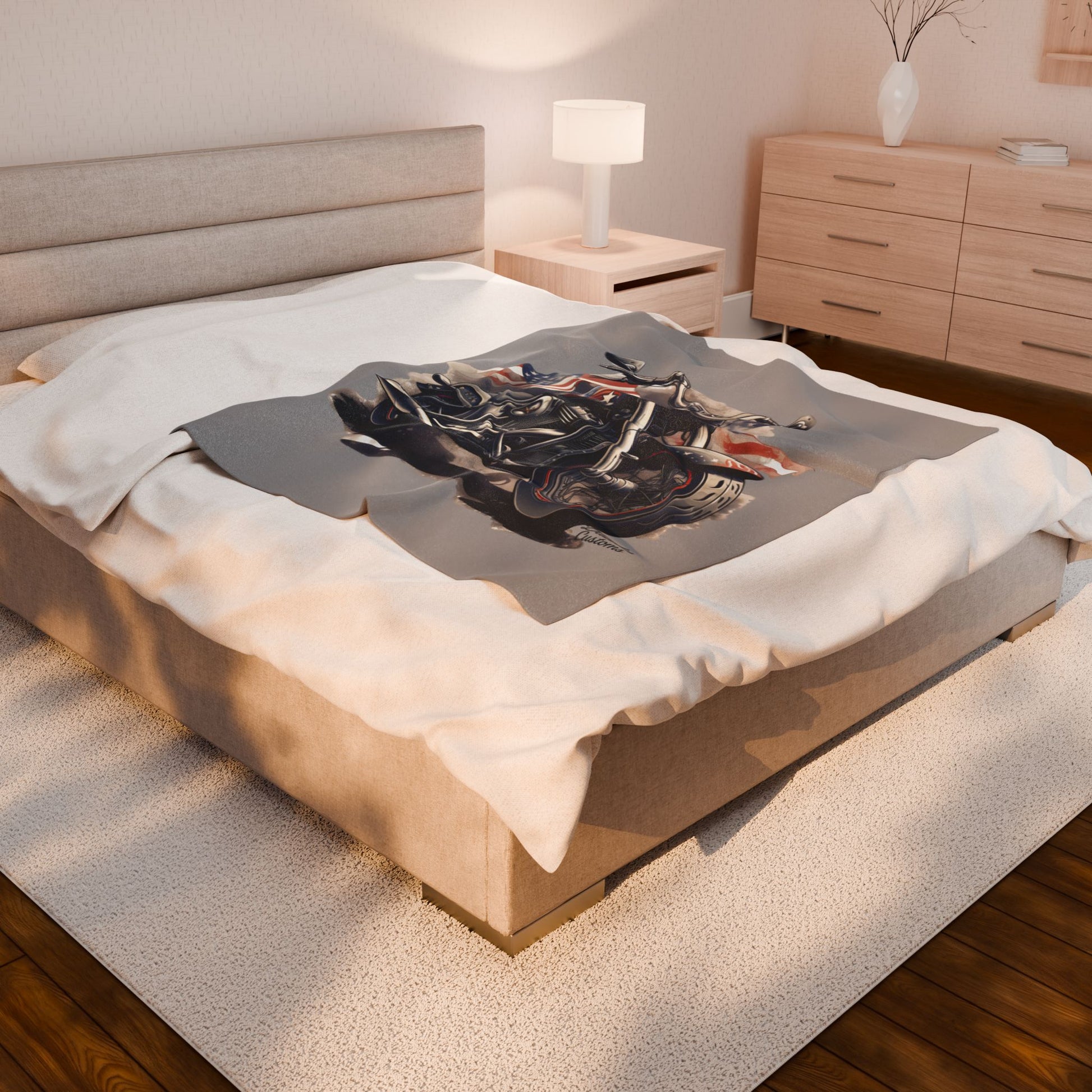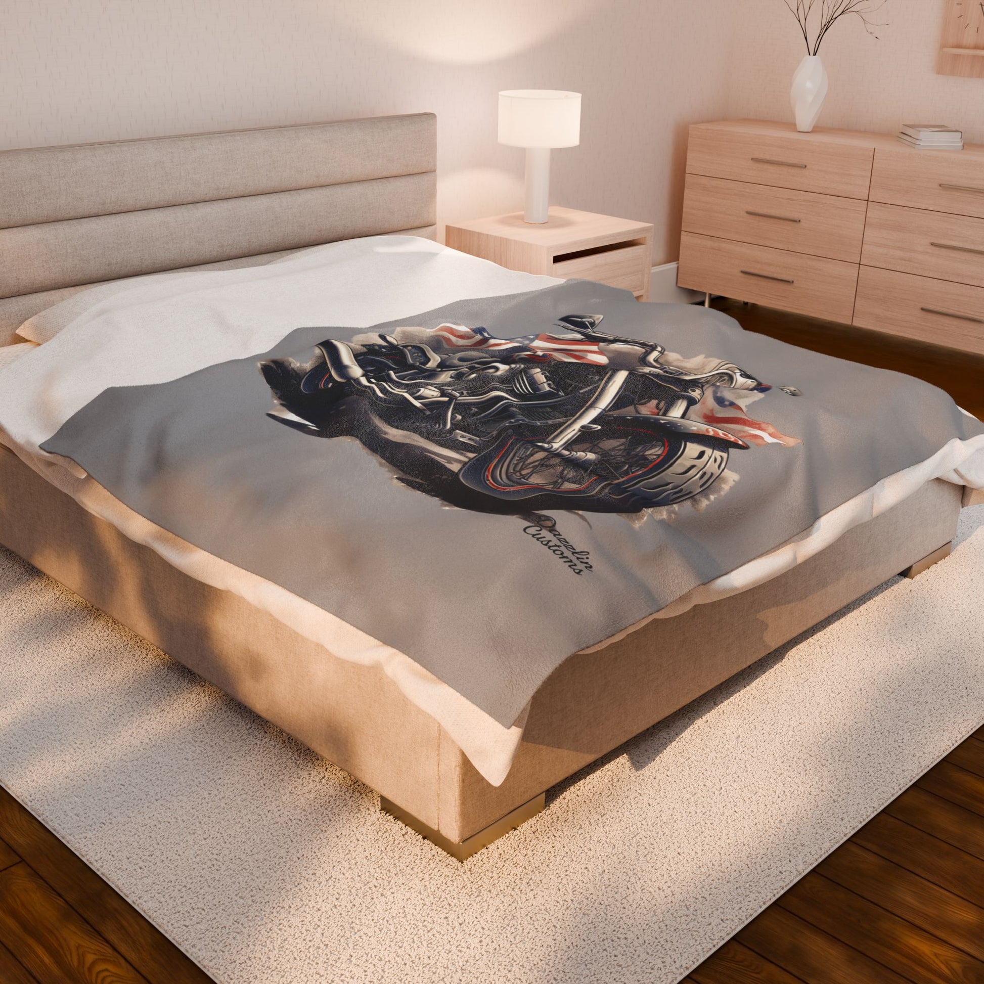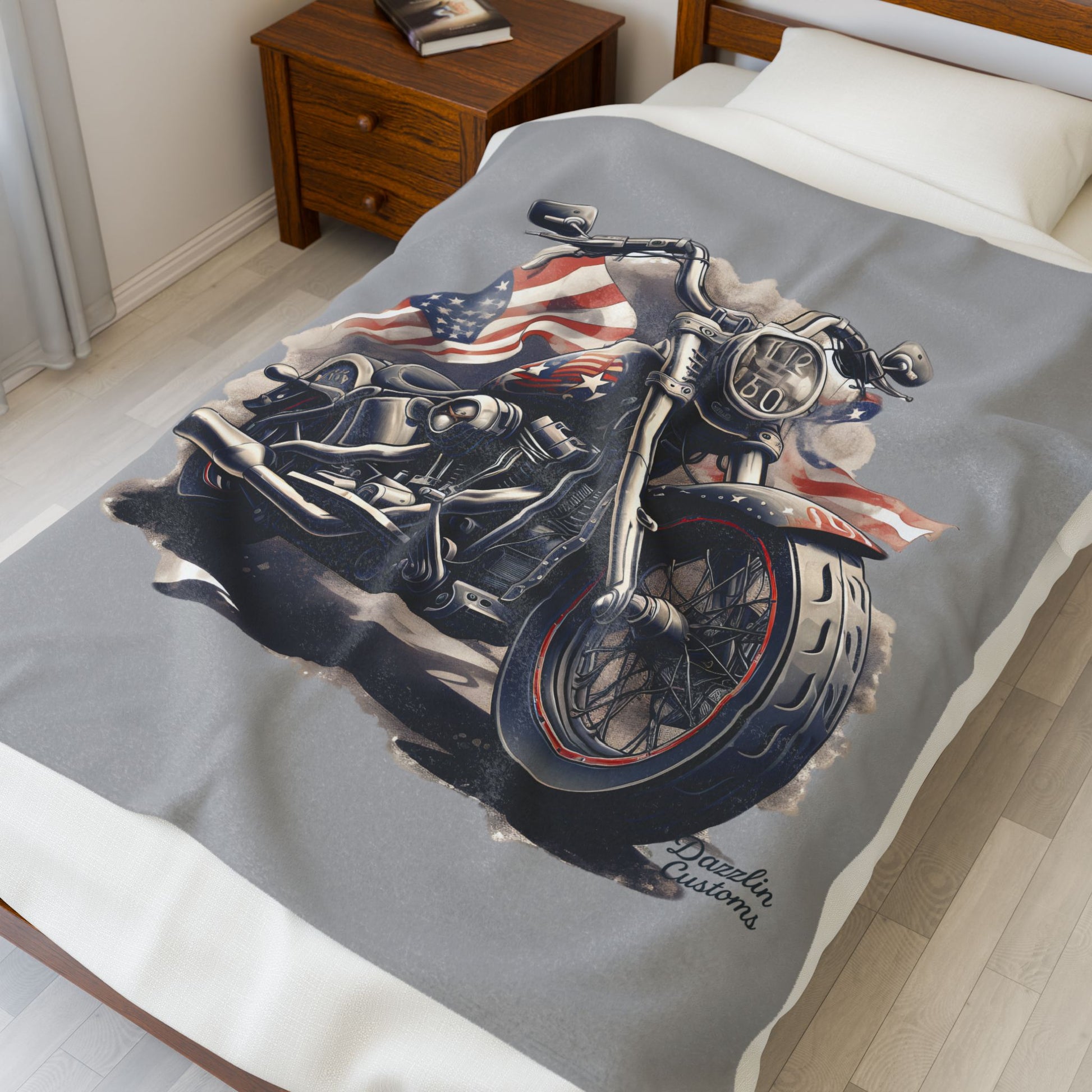 Patriotic Motorcycle Velveteen Plush Blanket | Cozy Gifts for Bikers, Camping, Home Decor, Americana