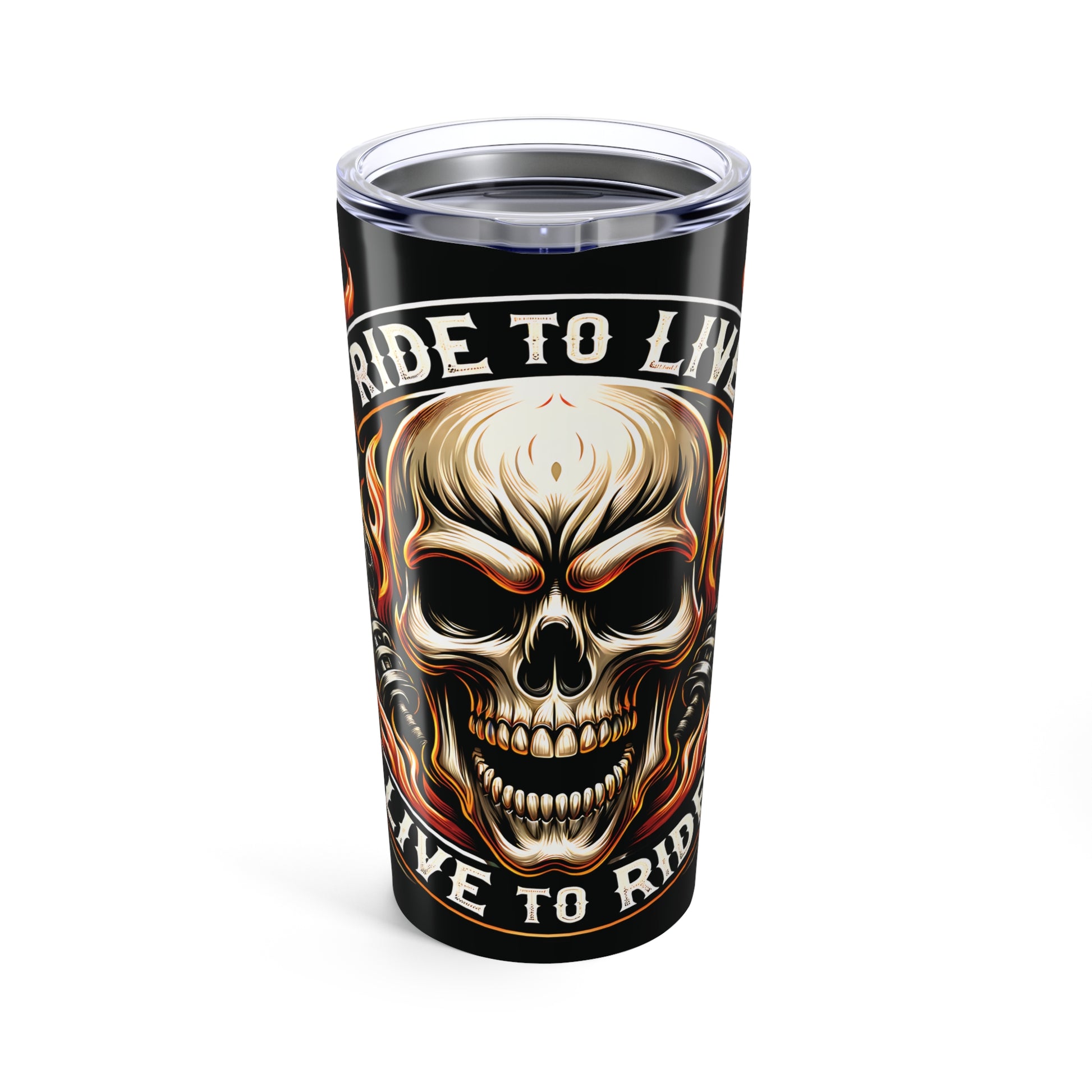 Skull Design Tumbler 20oz | Ride to Live Quote Travel Mug, Biker Gift, Birthday Cup, Halloween Decor, Cool Beverages Container