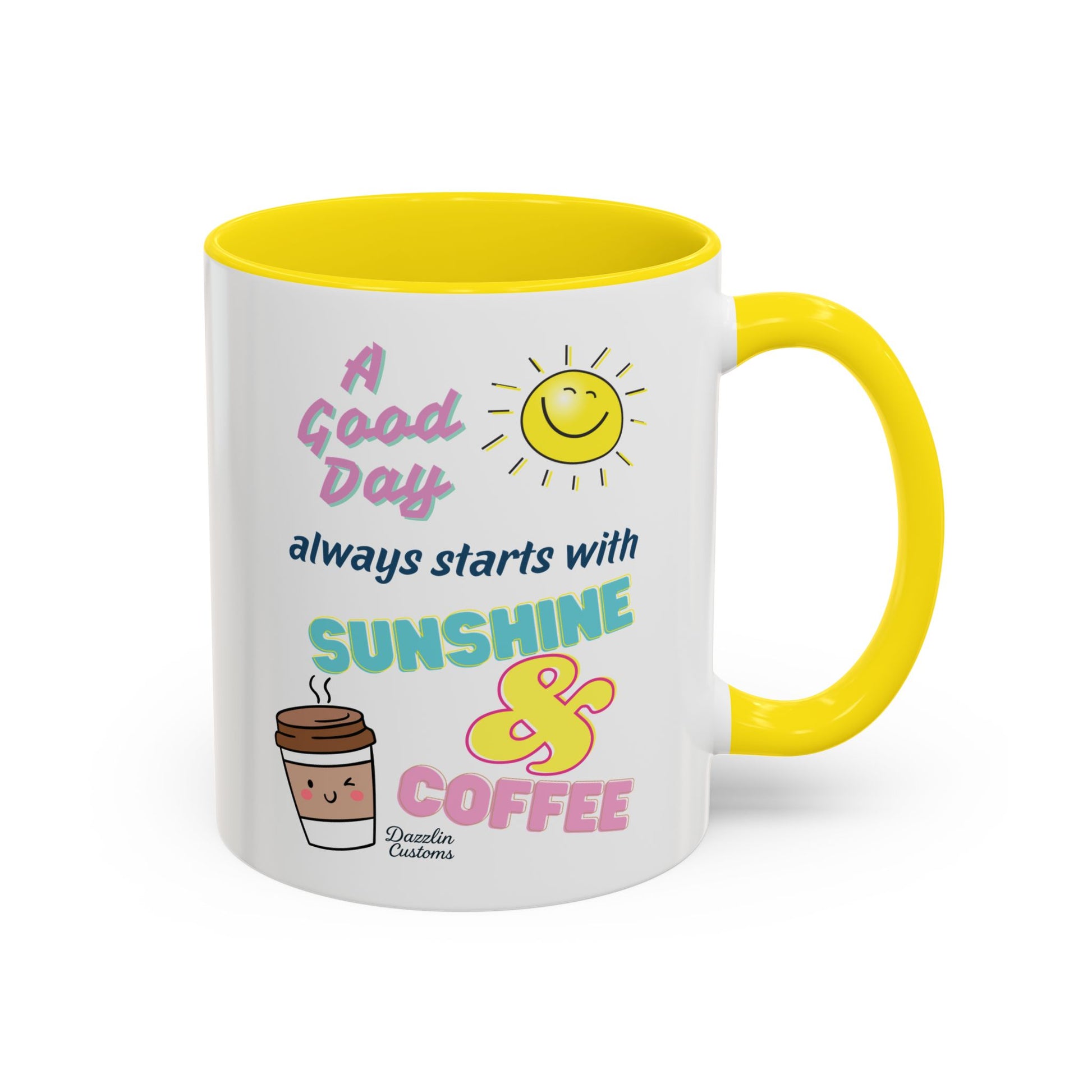 Start your day with a smile and a hot beverage in this delightful Accent Coffee Mug. Crafted to elevate your morning routine, this mug features vibrant colors and playful designs that inspire positivity and joy with each sip. Perfect for coffee lovers, it makes a fantastic gift for friends, family, or even as a personal treat. With its glossy finish and eye-catching color contrast, it adds a splash of fun to your kitchen or office space. Ideal for holidays like Mother's Day, birthdays, or cozy coffee breaks, this mug is the perfect companion for anyone looking to brighten their day!