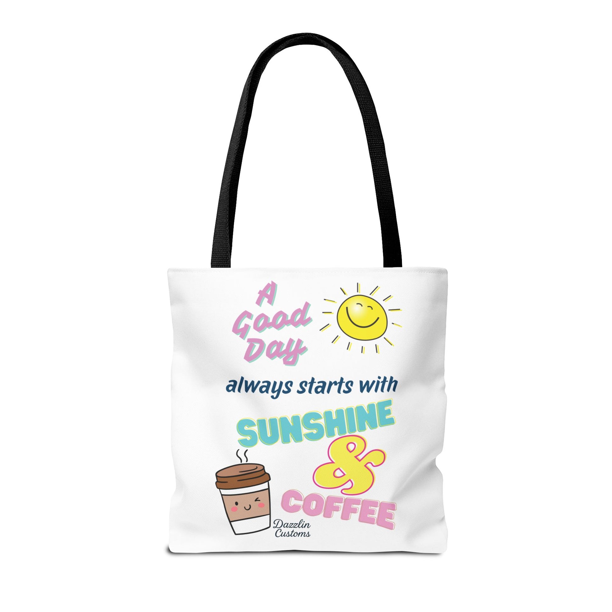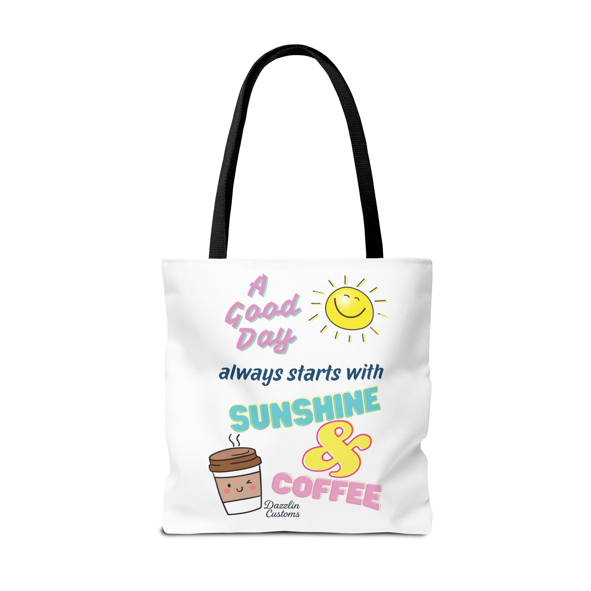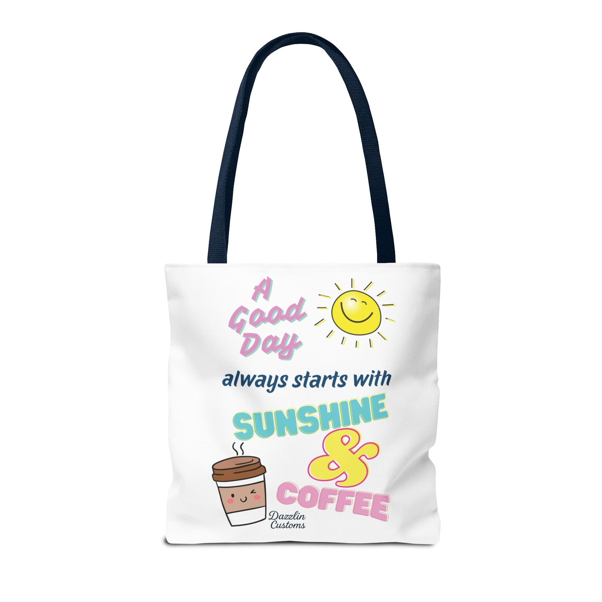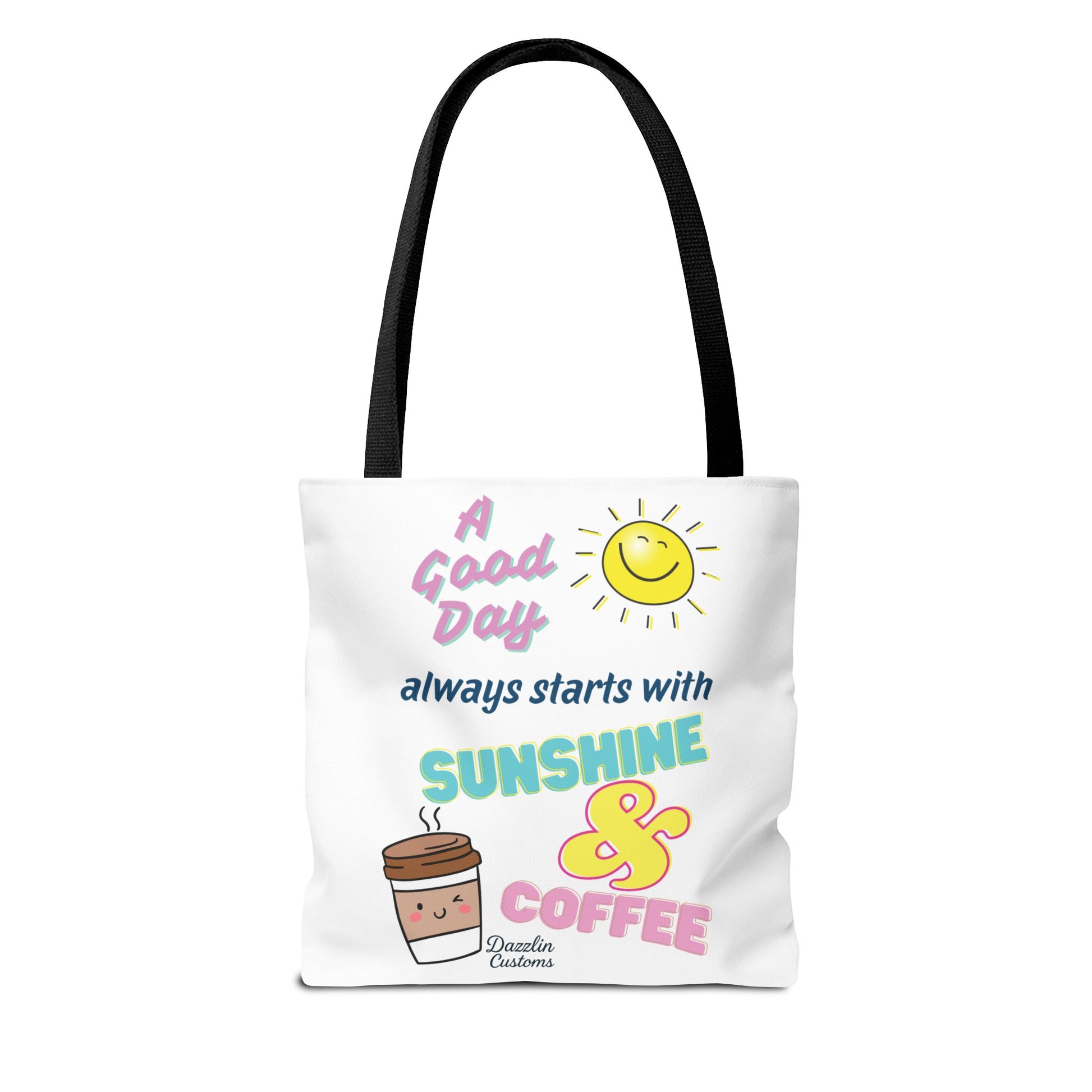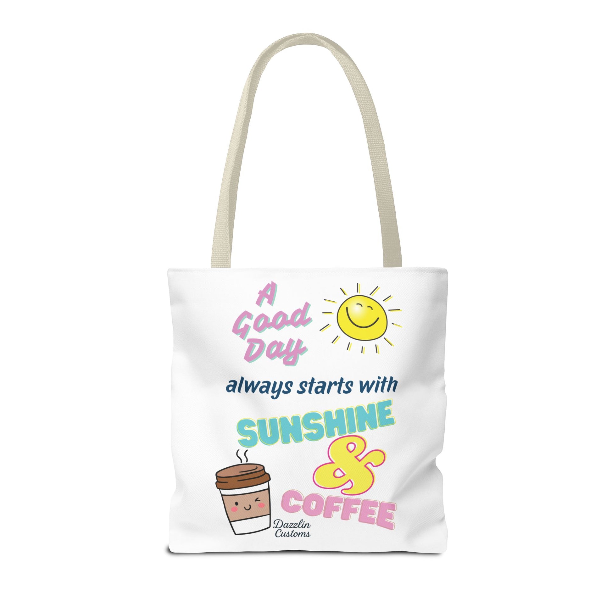 Brighten your day with this delightful Tote Bag! Featuring a cheerful design that includes uplifting phrases and playful graphics, this tote radiates positivity and joy. Perfect for those who love to start their morning with sunshine and coffee, it adds a fun, vibrant touch to your daily routine. Ideal for anyone looking to express their sunny disposition, this tote bag is perfect for students, busy professionals, or anyone on the go. Whether it’s for casual outings, grocery shopping, or a day at the beach, this tote is versatile and practical. Celebrate all occasions, from birthday gifts to ‘just because’ surprises, and spread a little happiness with every use!