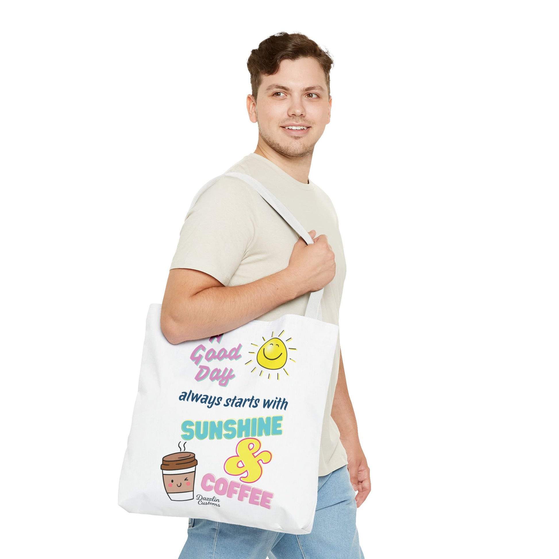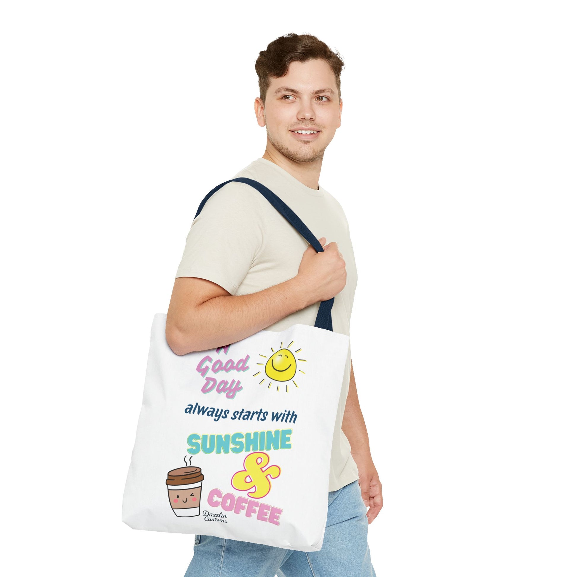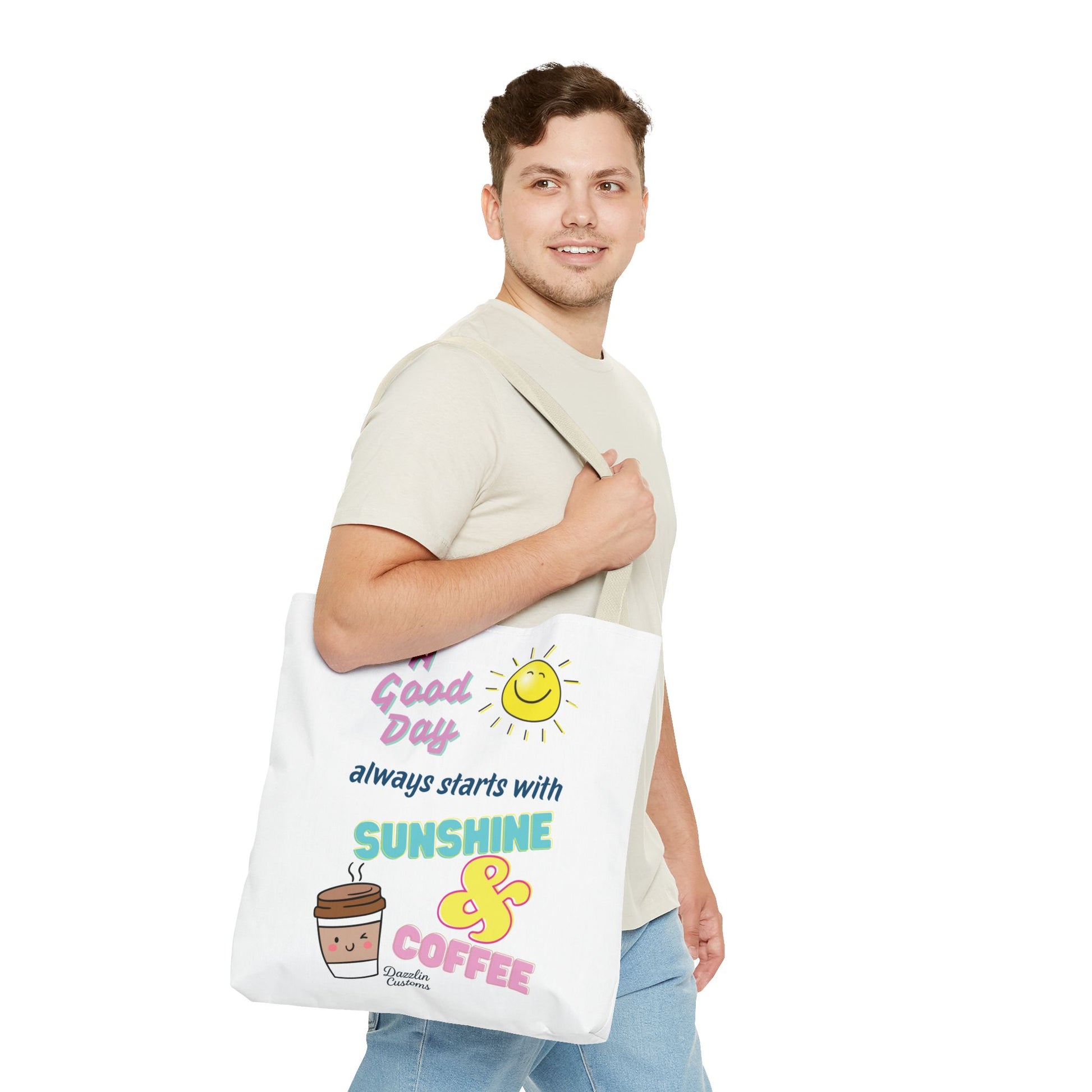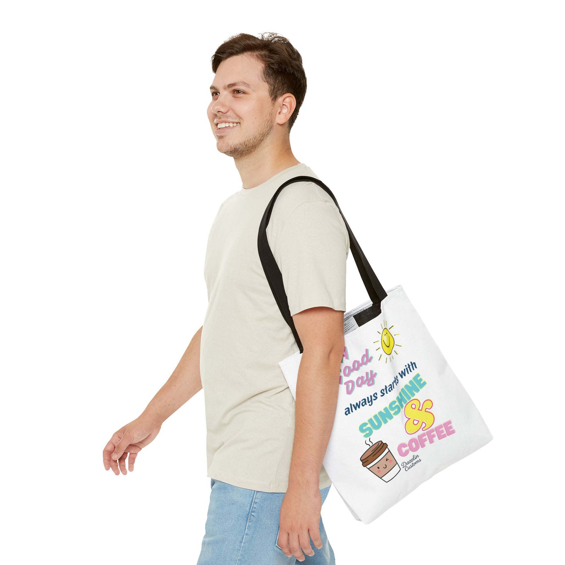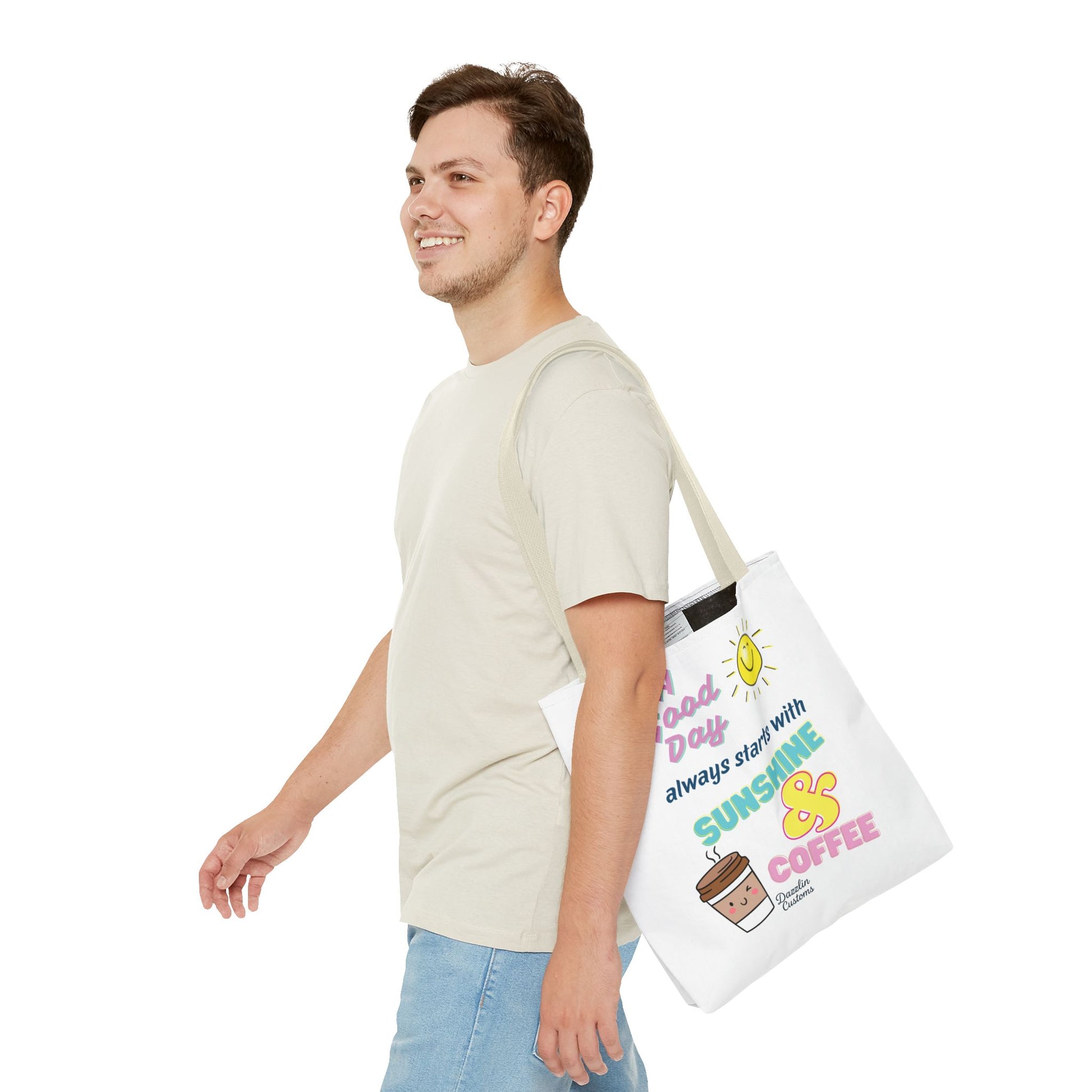 Brighten your day with this delightful Tote Bag! Featuring a cheerful design that includes uplifting phrases and playful graphics, this tote radiates positivity and joy. Perfect for those who love to start their morning with sunshine and coffee, it adds a fun, vibrant touch to your daily routine. Ideal for anyone looking to express their sunny disposition, this tote bag is perfect for students, busy professionals, or anyone on the go. Whether it’s for casual outings, grocery shopping, or a day at the beach, this tote is versatile and practical. Celebrate all occasions, from birthday gifts to ‘just because’ surprises, and spread a little happiness with every use!