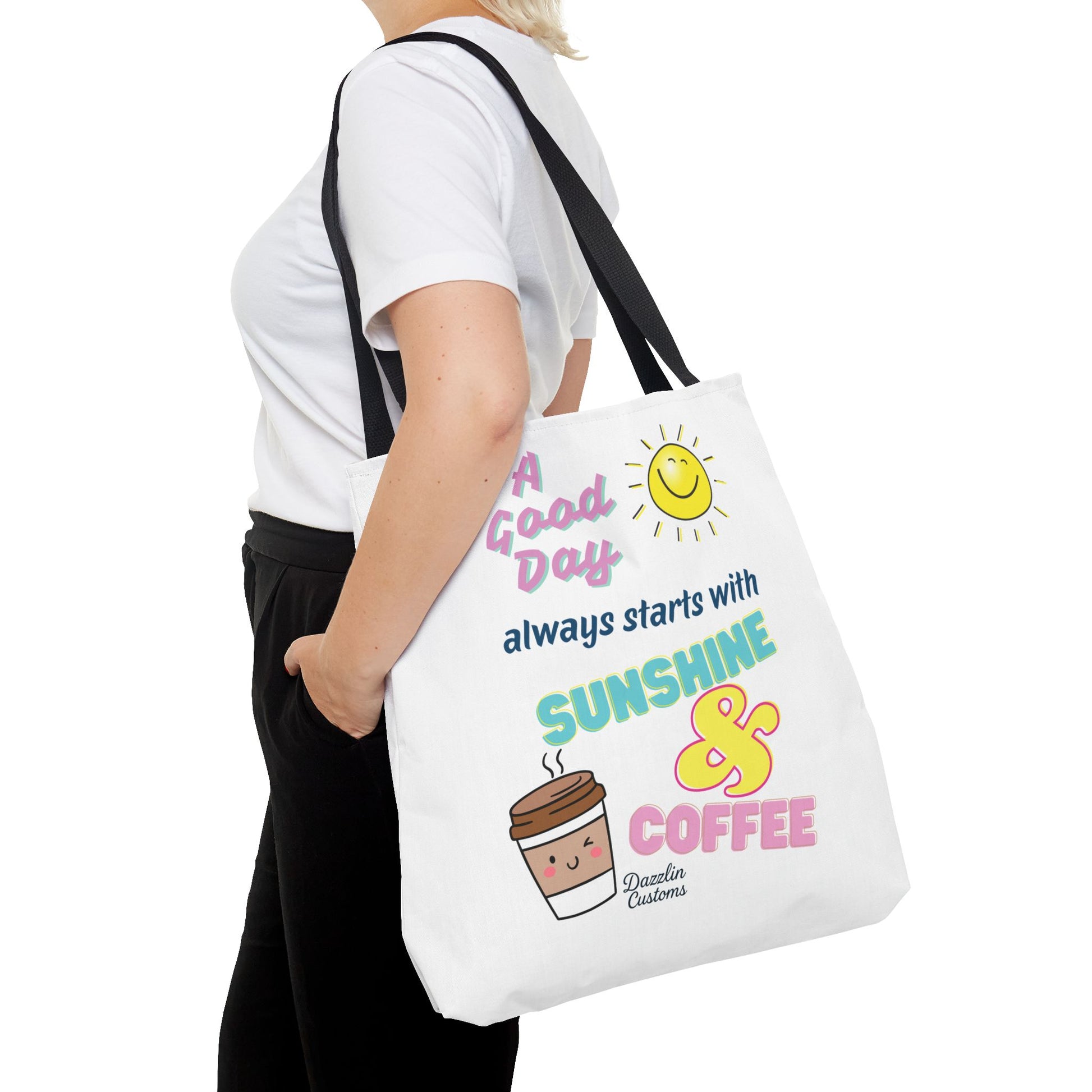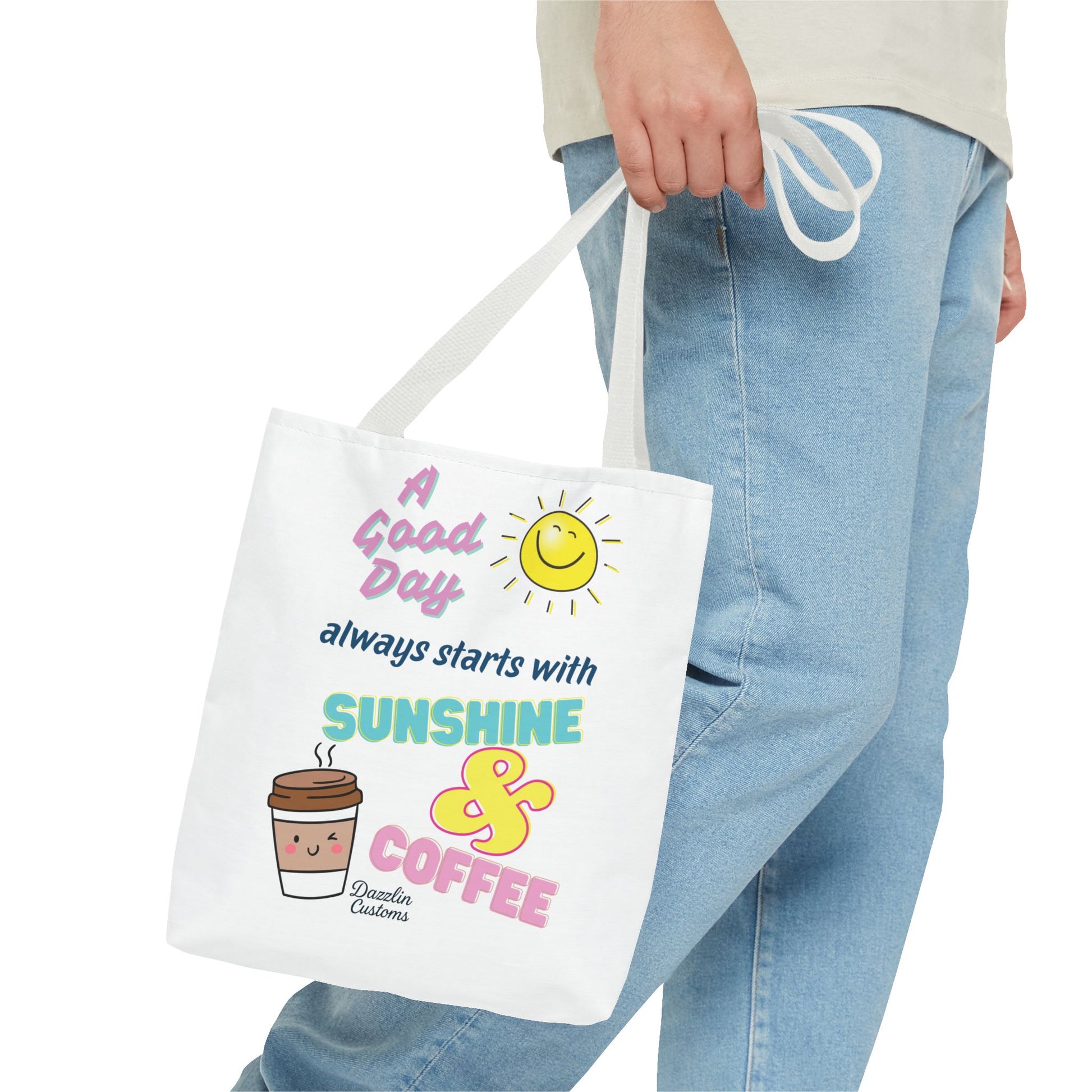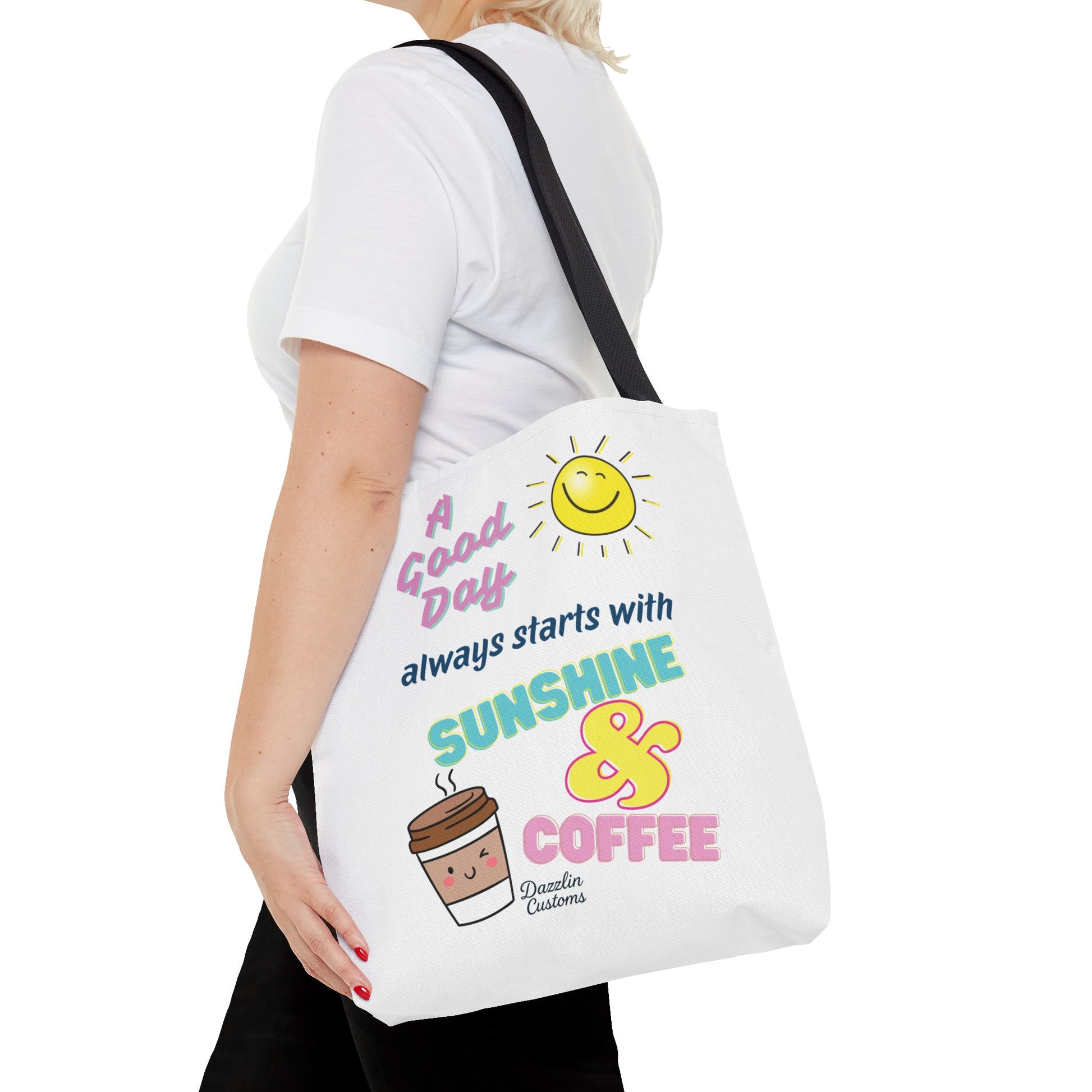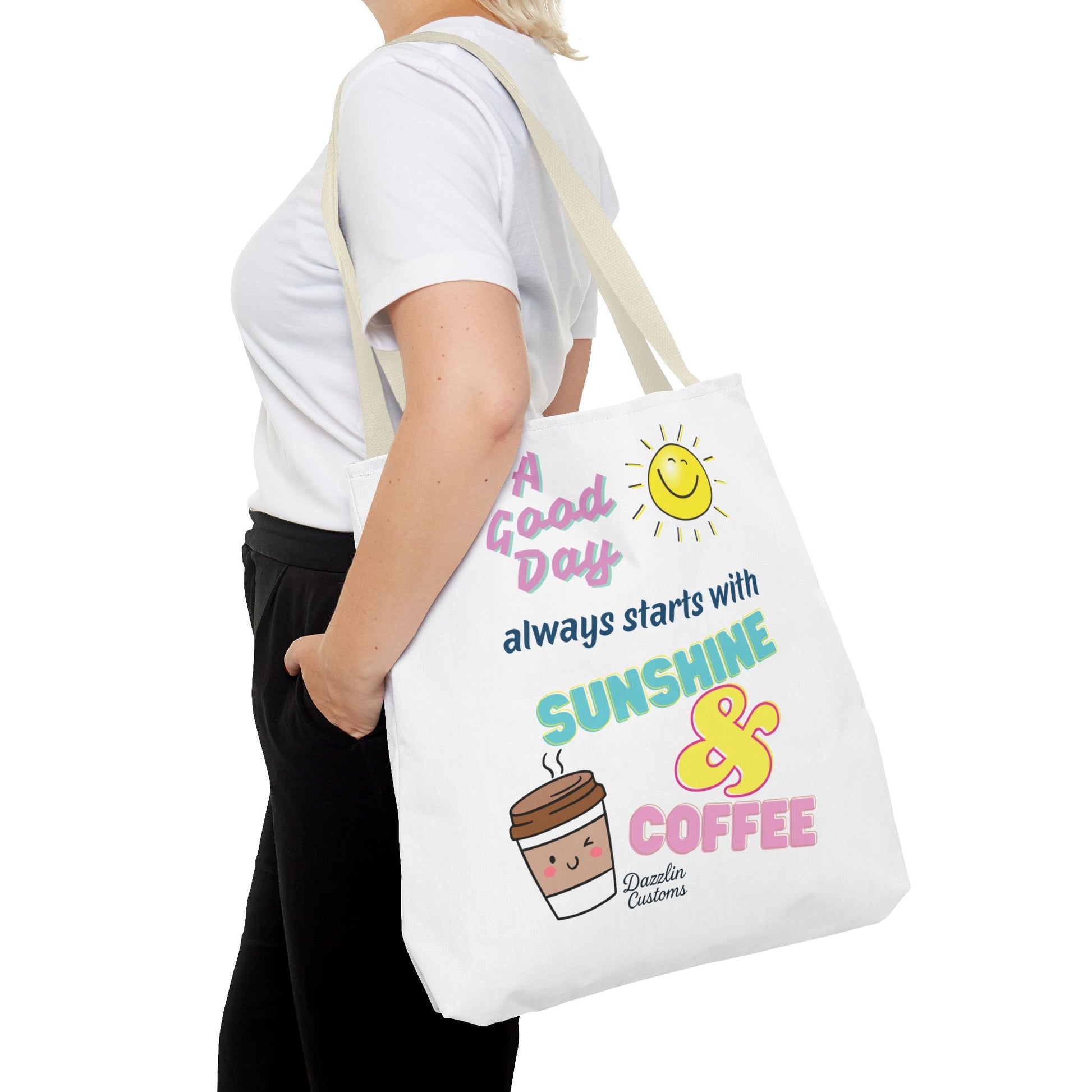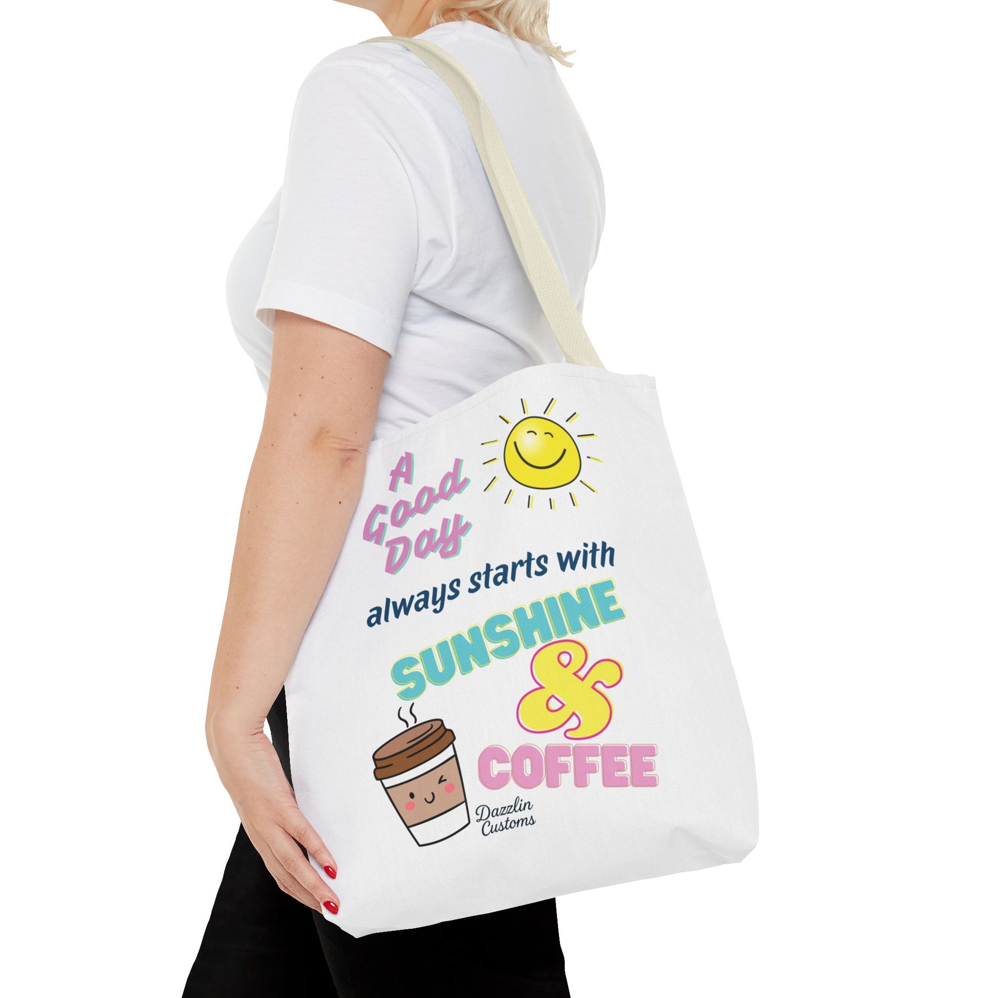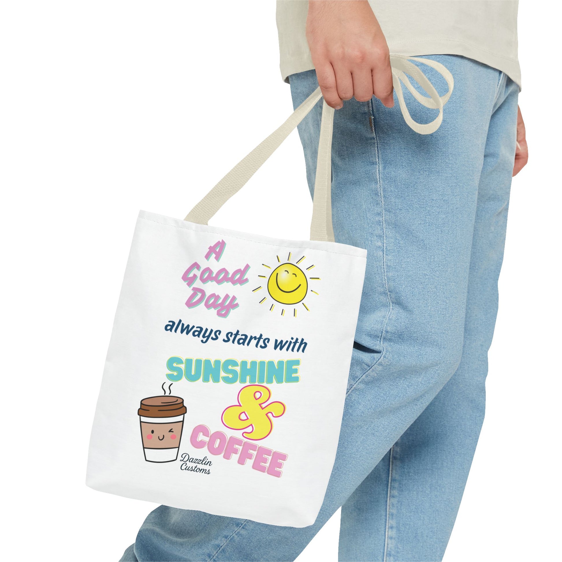 Brighten your day with this delightful Tote Bag! Featuring a cheerful design that includes uplifting phrases and playful graphics, this tote radiates positivity and joy. Perfect for those who love to start their morning with sunshine and coffee, it adds a fun, vibrant touch to your daily routine. Ideal for anyone looking to express their sunny disposition, this tote bag is perfect for students, busy professionals, or anyone on the go. Whether it’s for casual outings, grocery shopping, or a day at the beach, this tote is versatile and practical. Celebrate all occasions, from birthday gifts to ‘just because’ surprises, and spread a little happiness with every use!