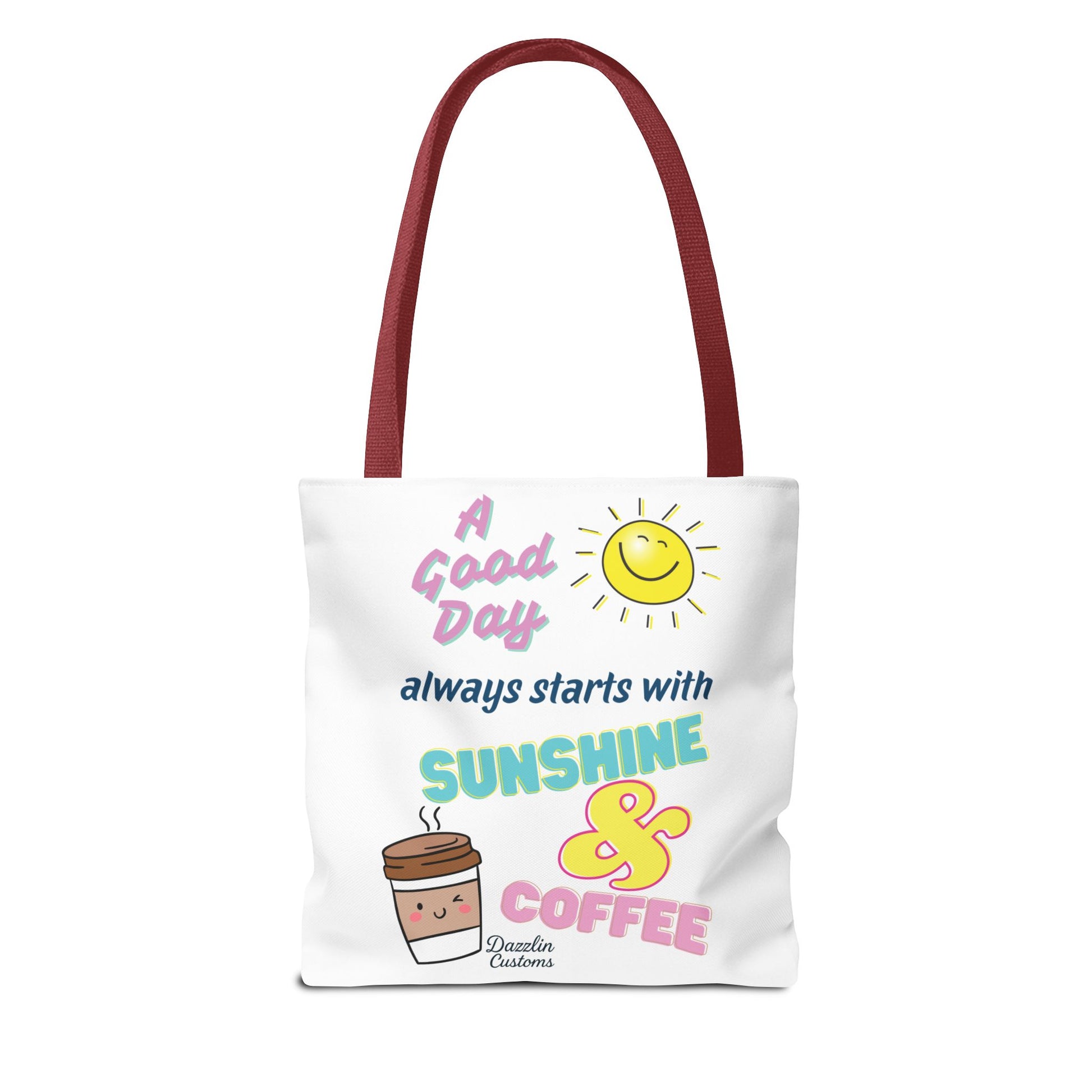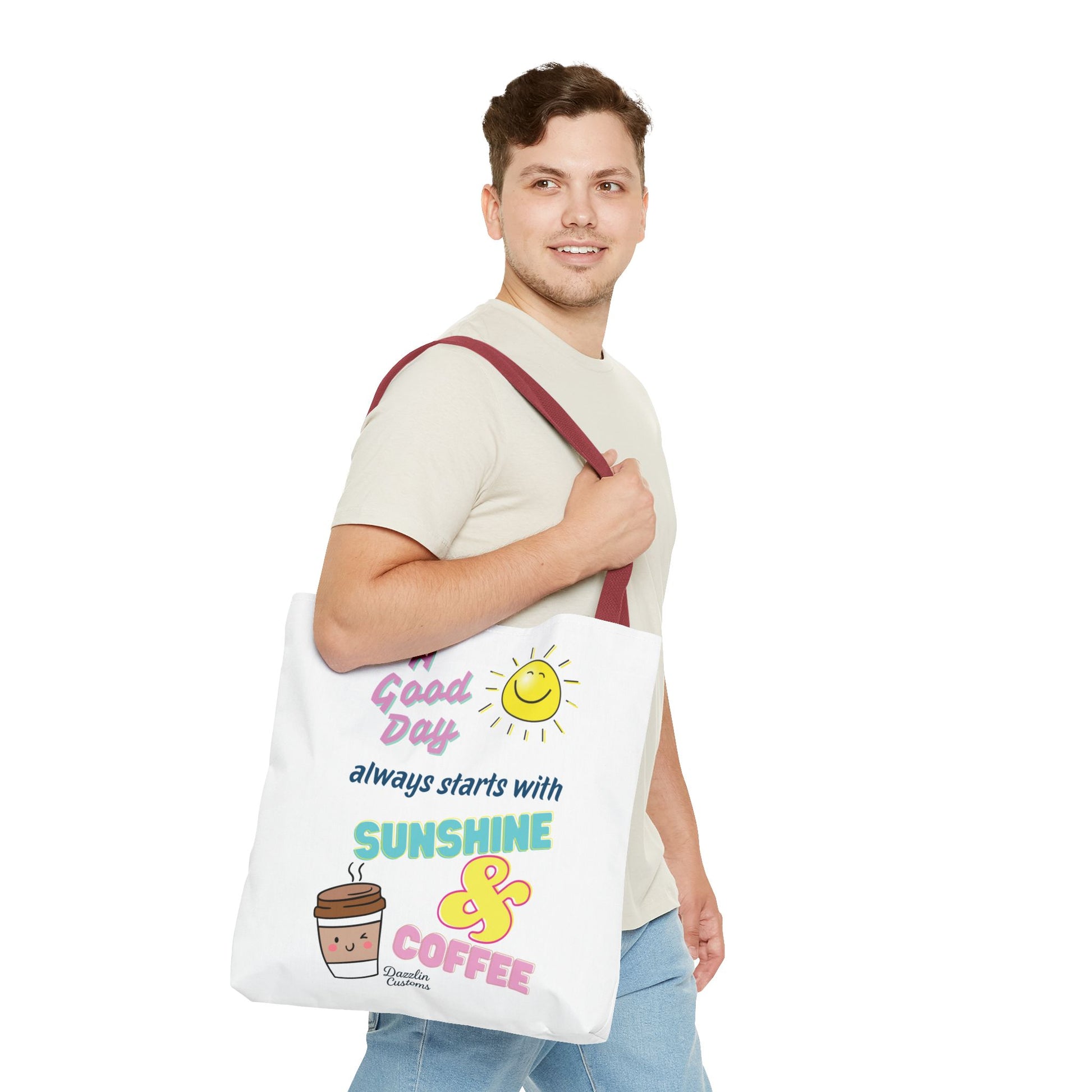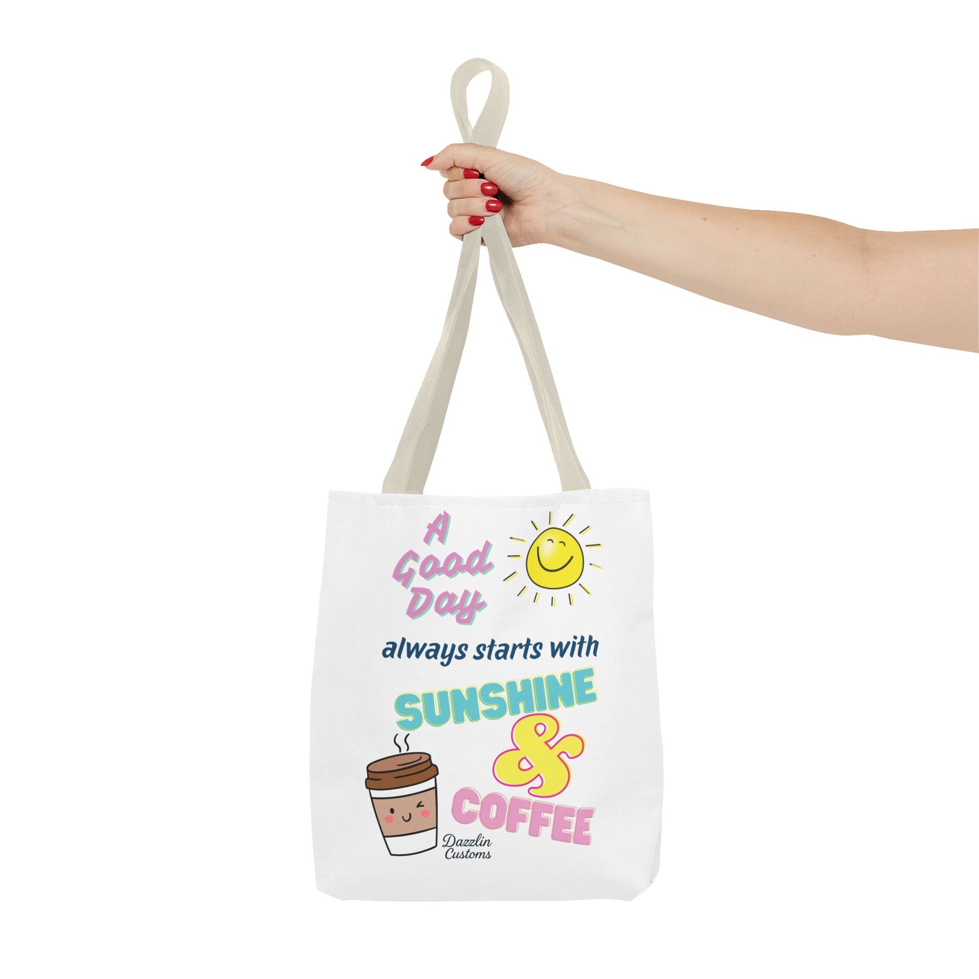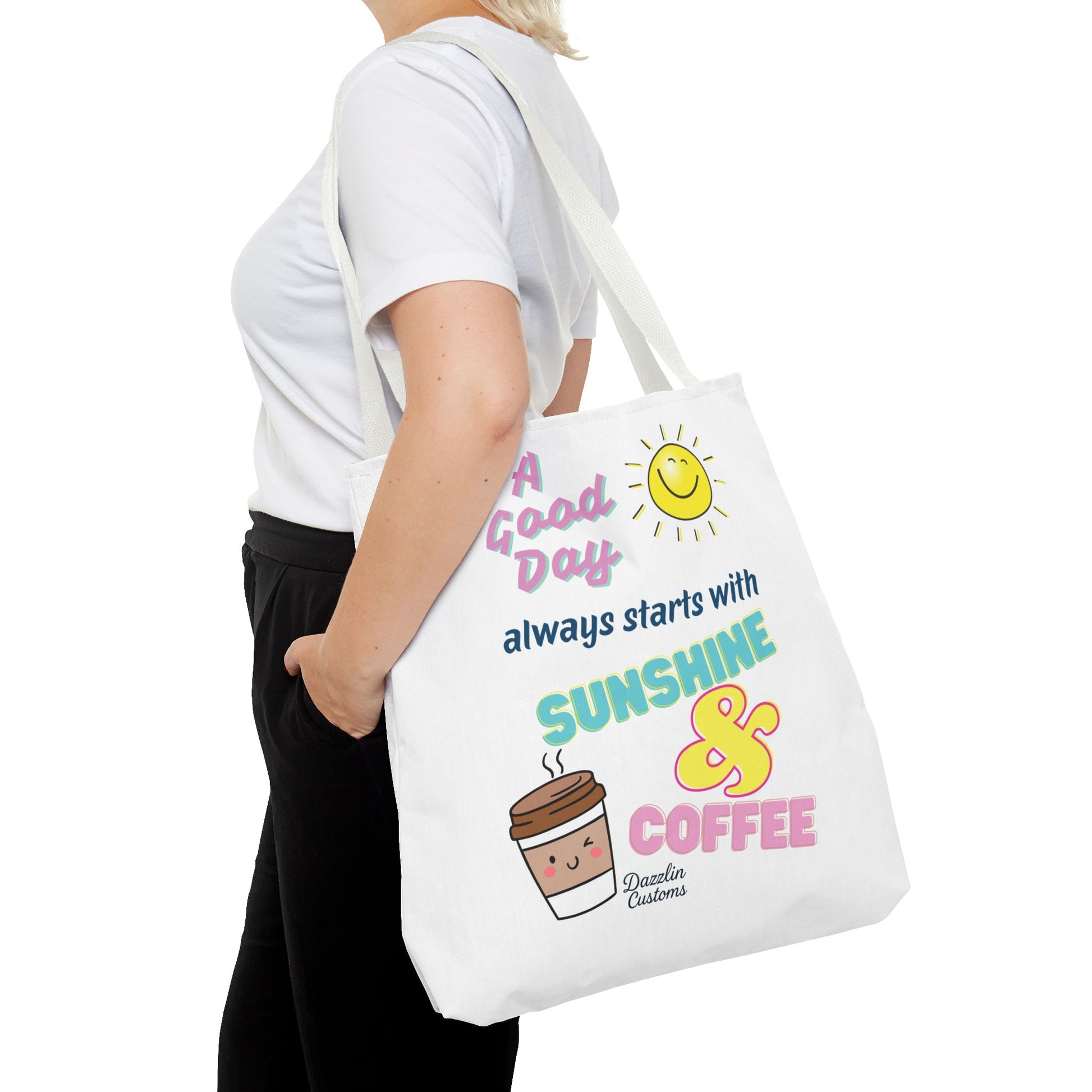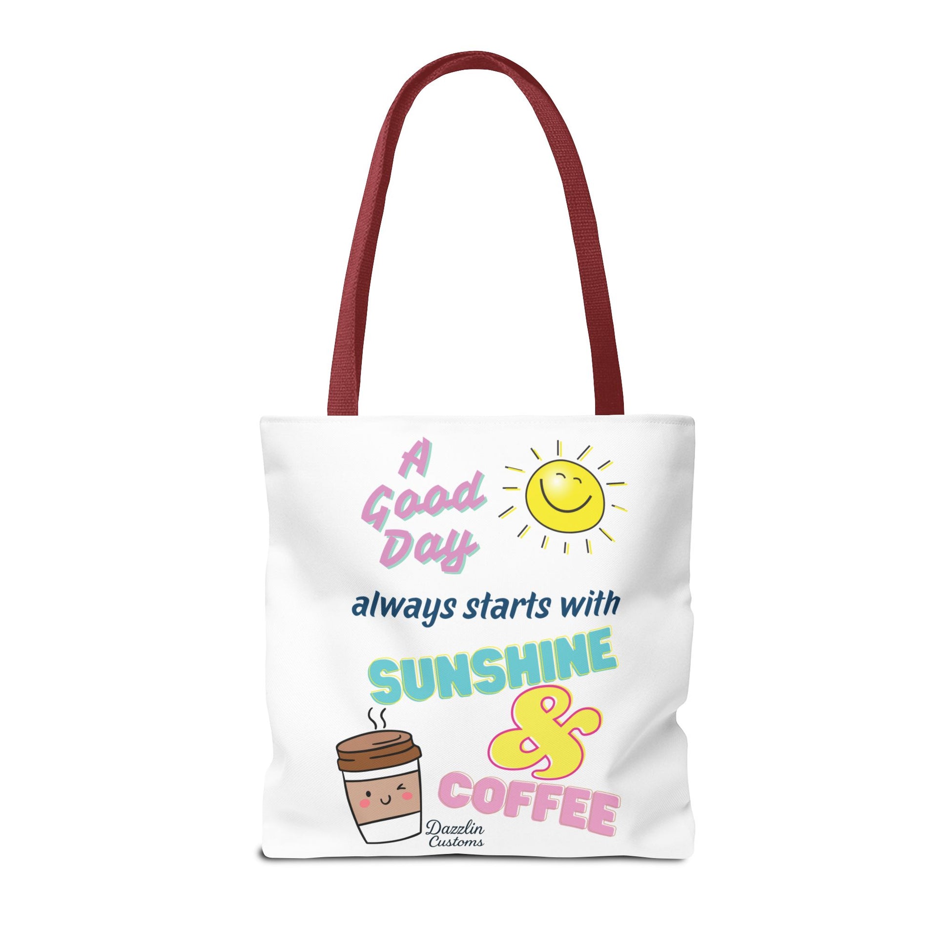 Brighten your day with this delightful Tote Bag! Featuring a cheerful design that includes uplifting phrases and playful graphics, this tote radiates positivity and joy. Perfect for those who love to start their morning with sunshine and coffee, it adds a fun, vibrant touch to your daily routine. Ideal for anyone looking to express their sunny disposition, this tote bag is perfect for students, busy professionals, or anyone on the go. Whether it’s for casual outings, grocery shopping, or a day at the beach, this tote is versatile and practical. Celebrate all occasions, from birthday gifts to ‘just because’ surprises, and spread a little happiness with every use!