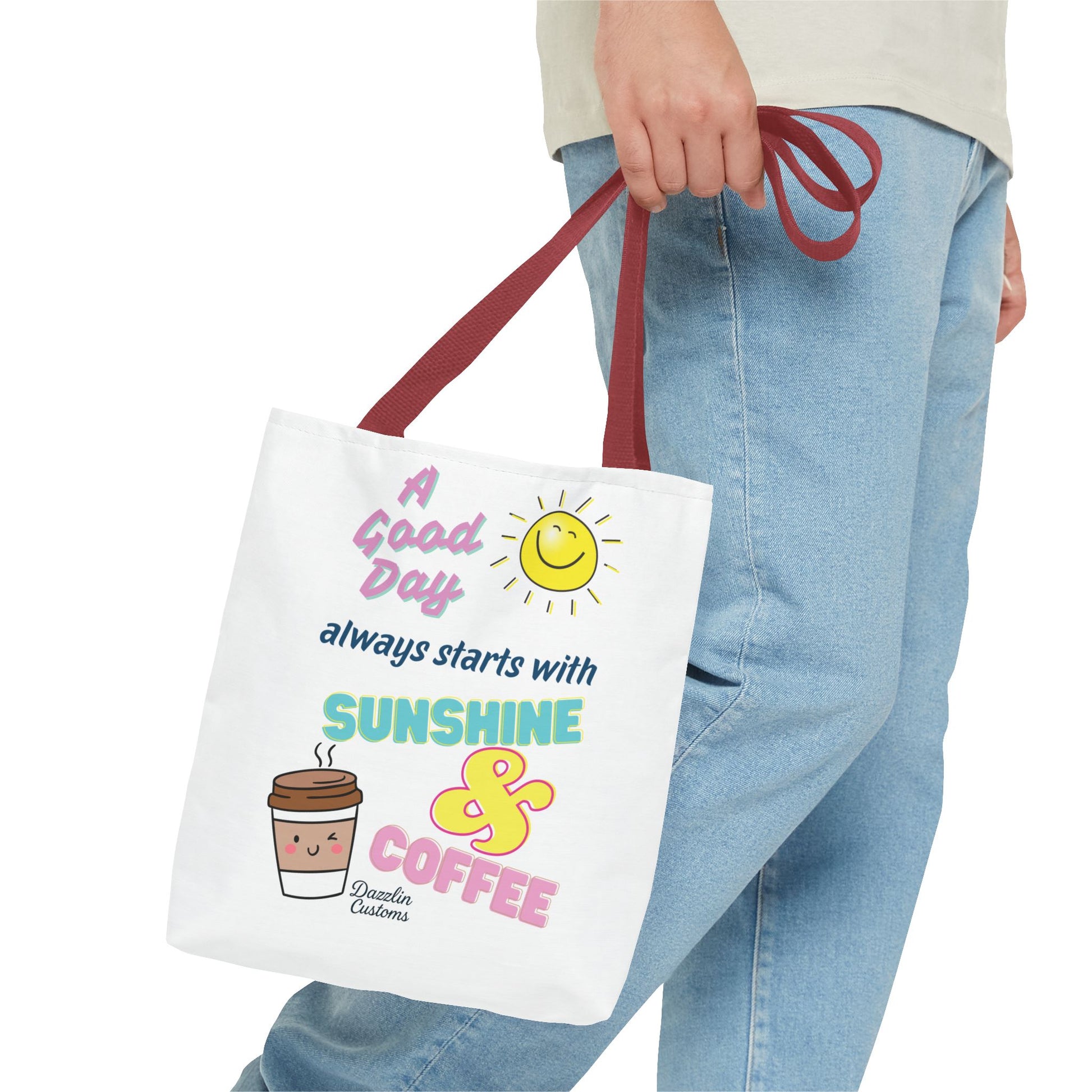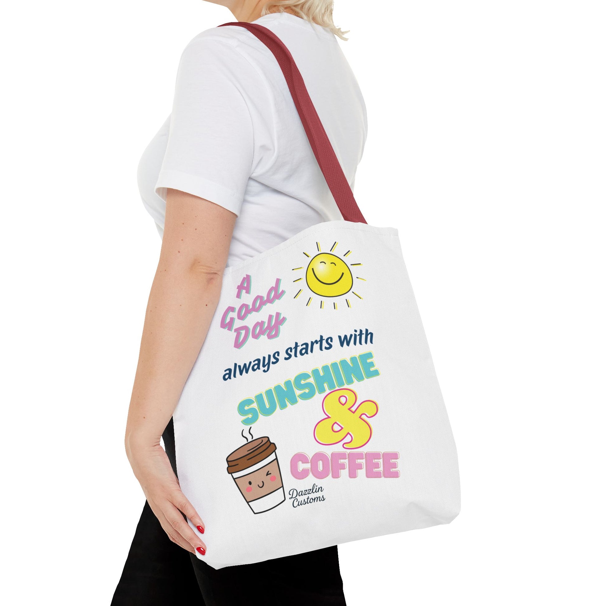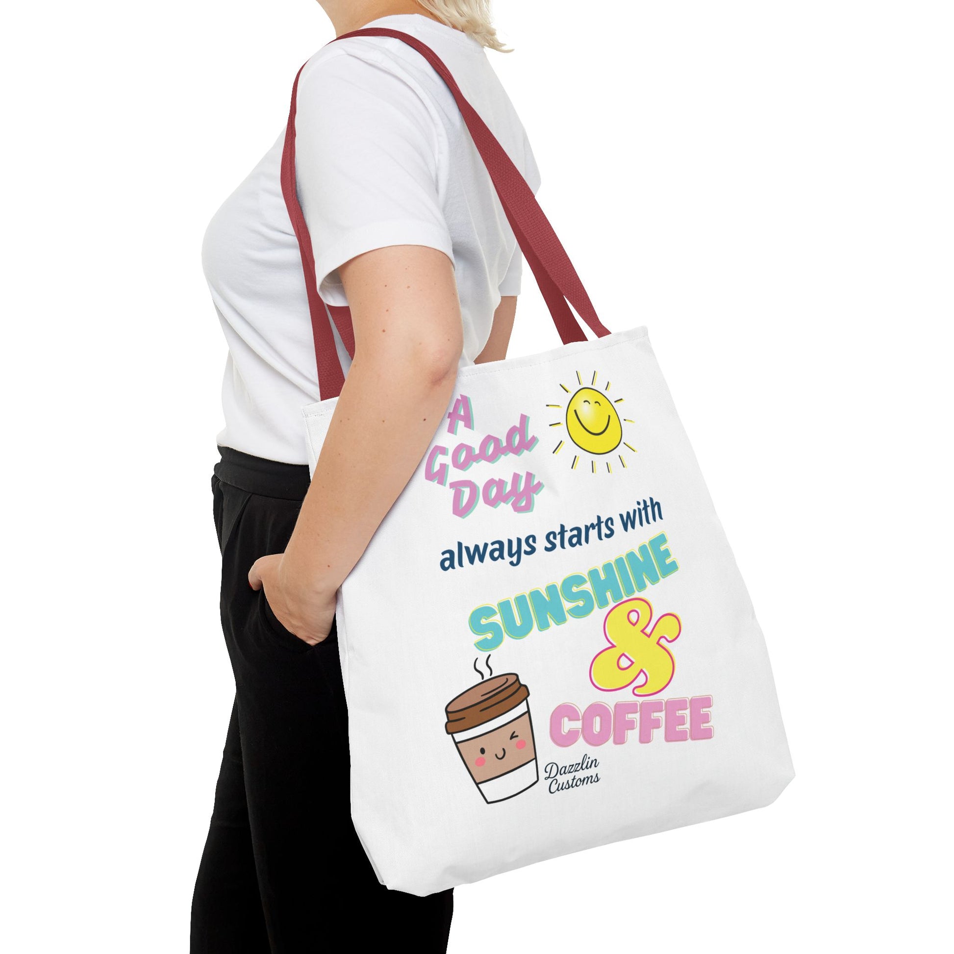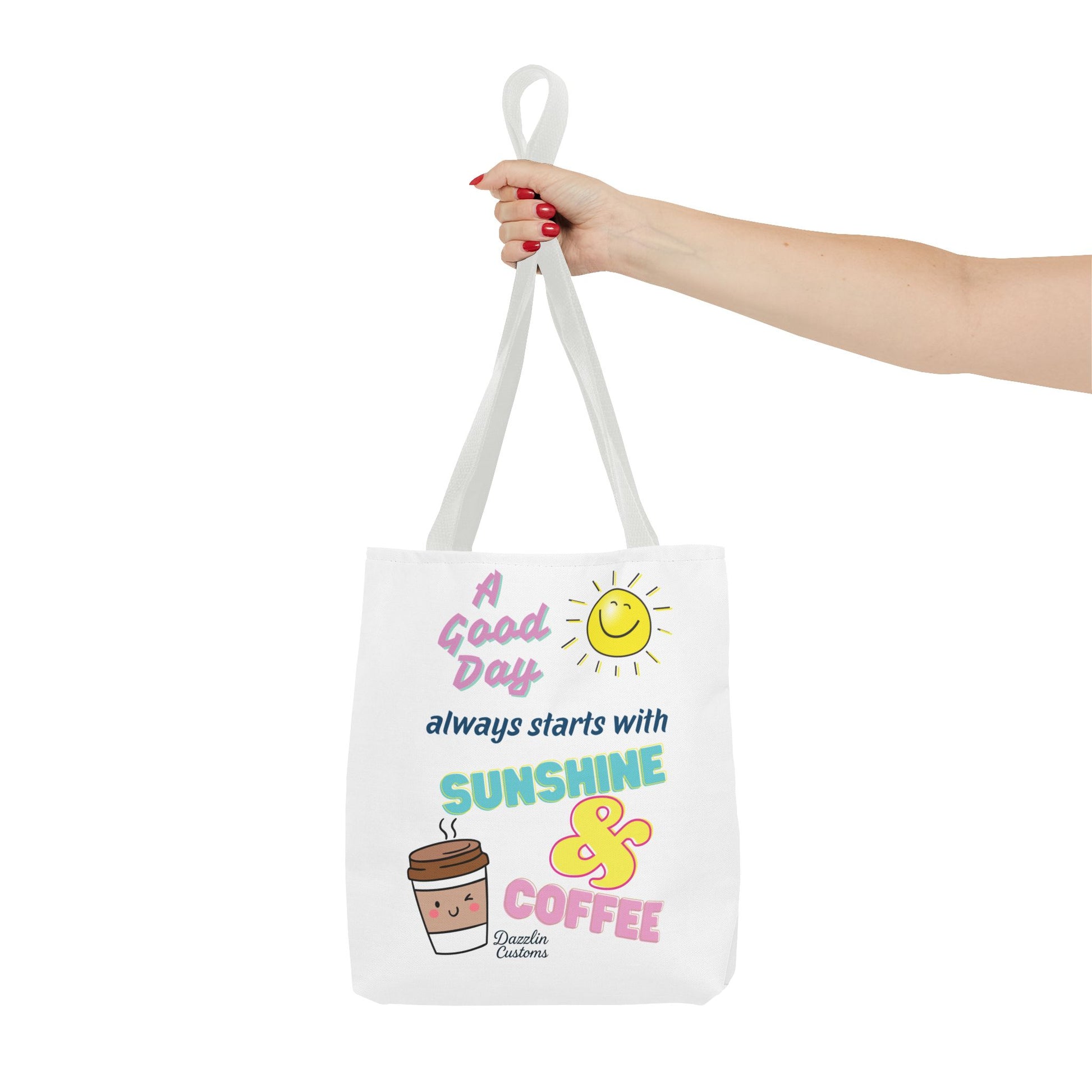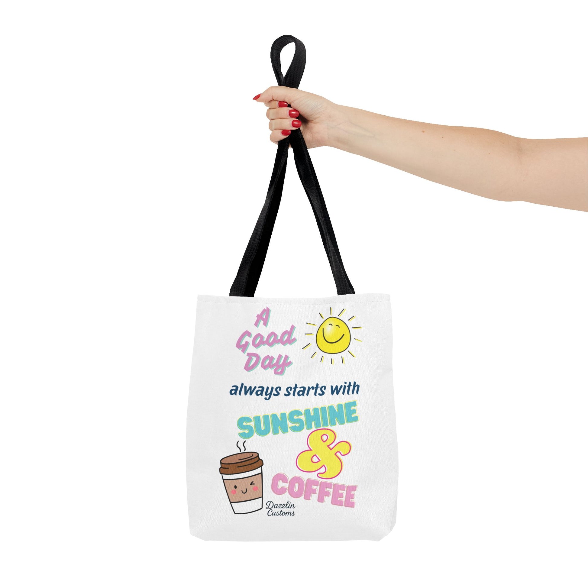 Brighten your day with this delightful Tote Bag! Featuring a cheerful design that includes uplifting phrases and playful graphics, this tote radiates positivity and joy. Perfect for those who love to start their morning with sunshine and coffee, it adds a fun, vibrant touch to your daily routine. Ideal for anyone looking to express their sunny disposition, this tote bag is perfect for students, busy professionals, or anyone on the go. Whether it’s for casual outings, grocery shopping, or a day at the beach, this tote is versatile and practical. Celebrate all occasions, from birthday gifts to ‘just because’ surprises, and spread a little happiness with every use!